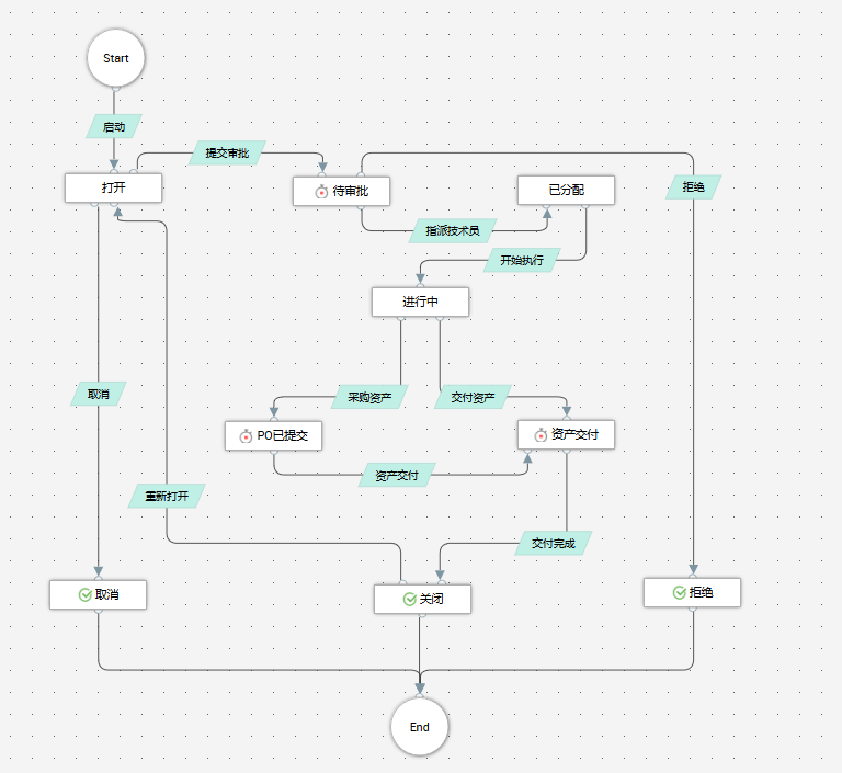 在右侧窗格中,您可以查看当前关联请求生命周期中配置的请求状态可能发生的转换。此处可以了解有关请求生命周期的详细信息。