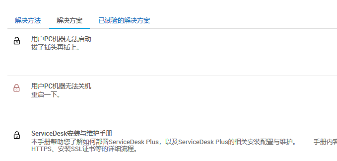 - 解决方案推荐不会列出已解决或已关闭的请求。
