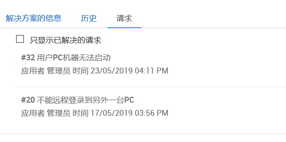 e. 您还可以使用“解决方案”模块中的推荐解决方案检查已解决的请求。