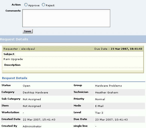 点击要审批的请求的标题。打开请求的详细信息页面。