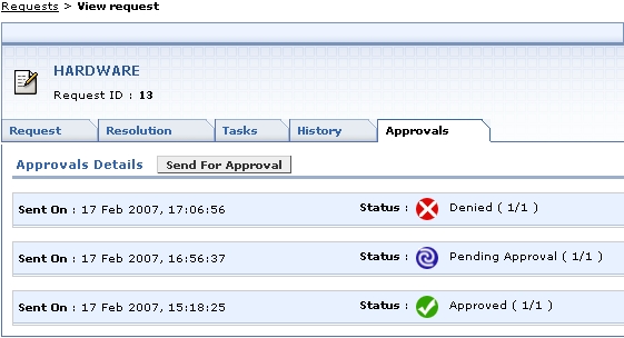 一旦请求被管理人员核准,其状态将会更改为已批准(Approved).如果被拒绝则状态为被拒绝(Denied)。