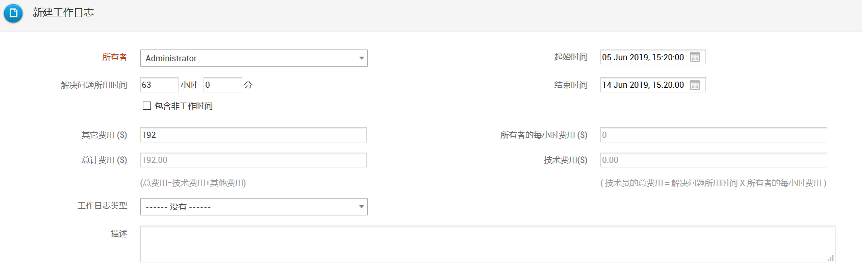 使用工作日志可以记录技术员在完成该任务时所花费的时间(以便准确核算成本)。