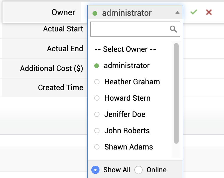 - 在出现的任务详细信息页面中,从下拉框中选择所有者。