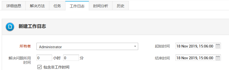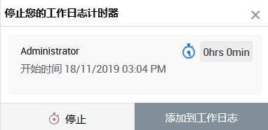 工作日志计时器中显示的时间可以添加到工作日志中。