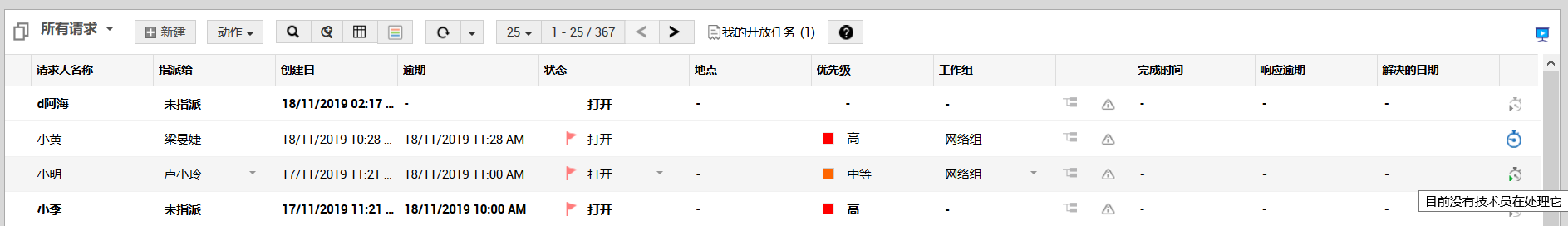 : 表示两个技术员[包括登录的技术员/管理员]正在处理该请求。