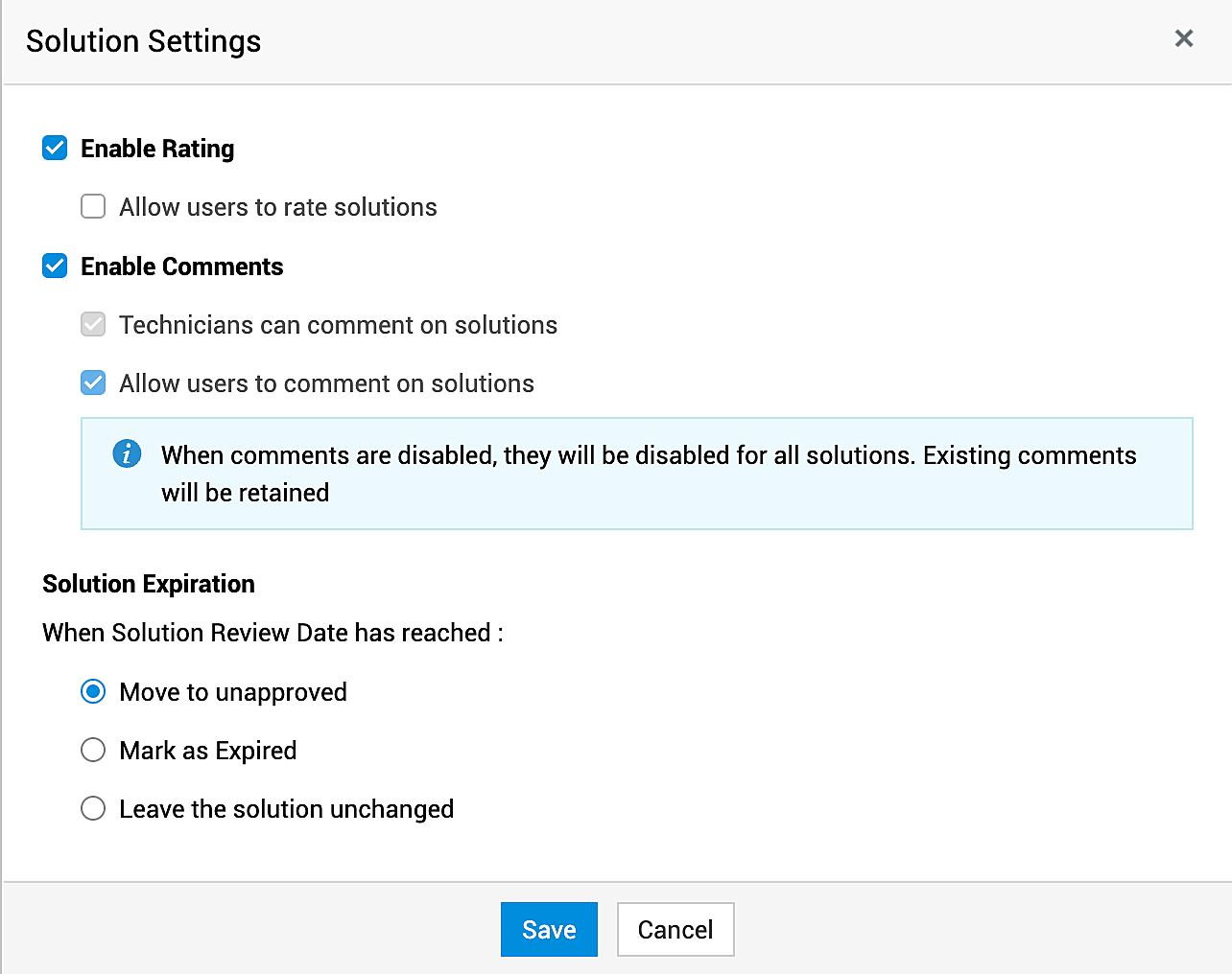 管理用户反馈和解决方案过期设置。