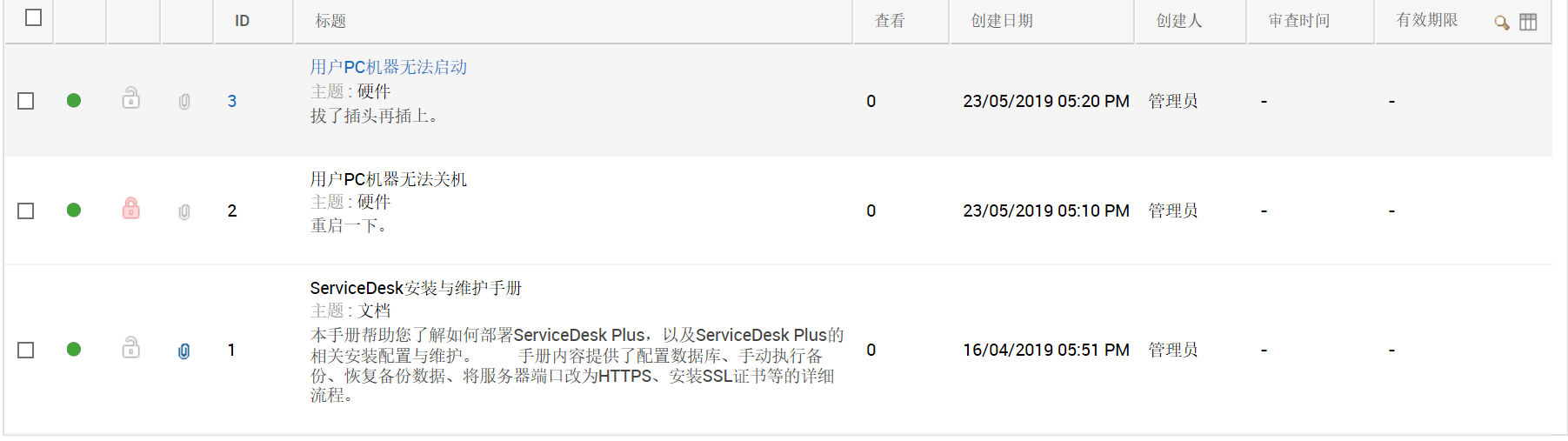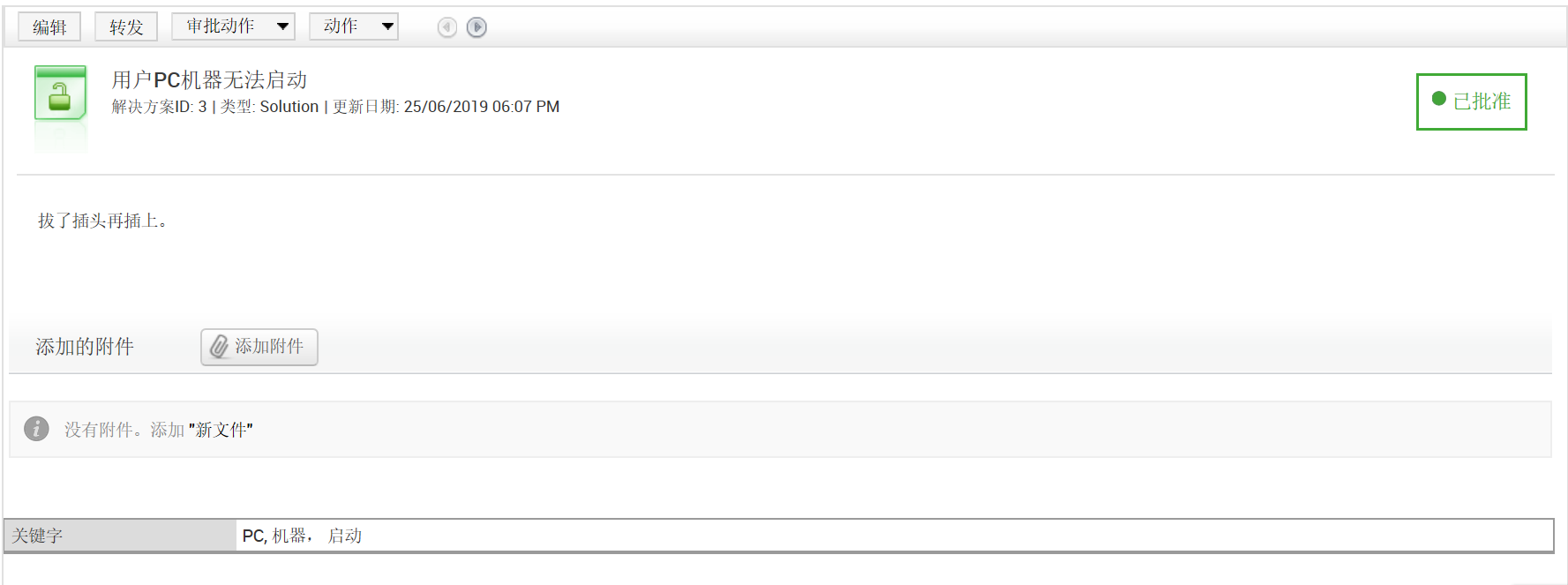 - 显示的内容包括主题、类型和分类以及解决方案的内容。