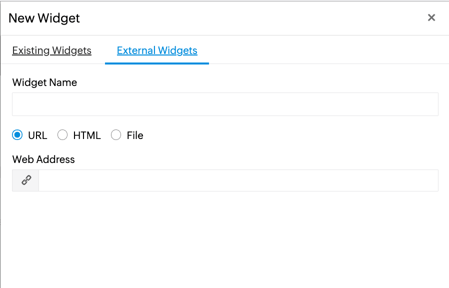 3.2:向选项卡添加小组件:选择并向选项卡添加现有小组件或外部小组件。您还可以将 URL、HTML 文件或其他文件嵌入为外部小组件。