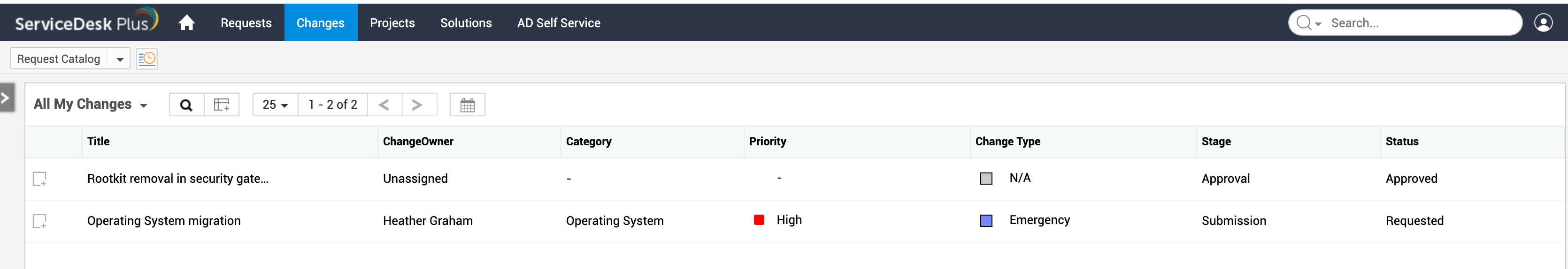 因此,如果您被分配了变更角色,例如直线经理,您就可以访问变更选项卡。