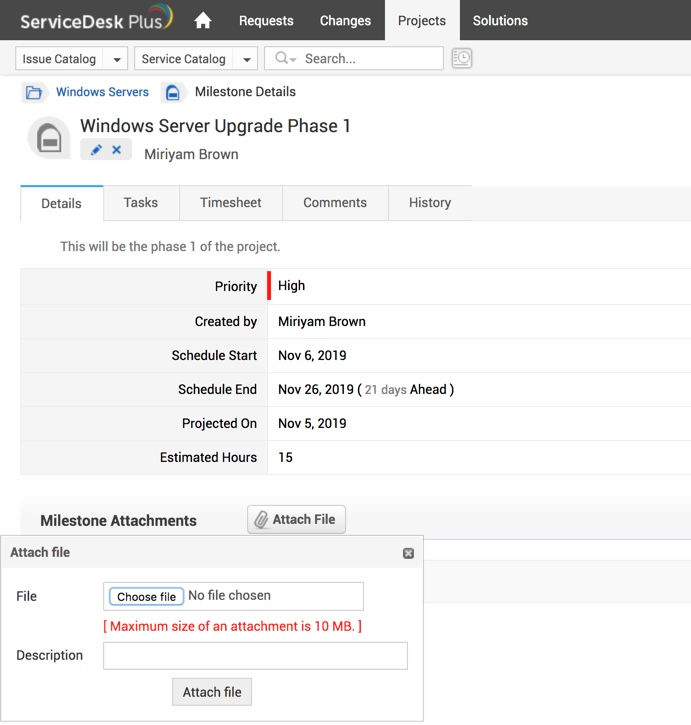 保存里程碑后,您可以添加大小不超过 10MB 的附件。
