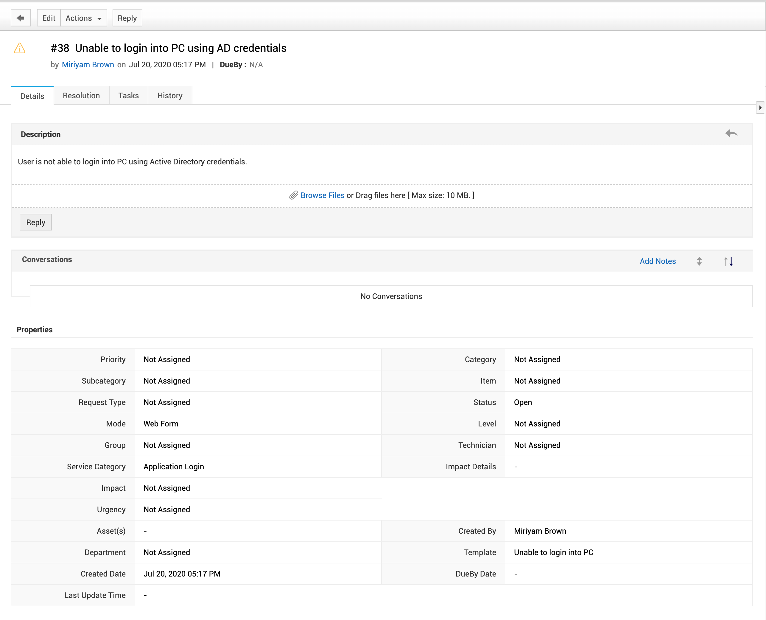 在此页面,你可以跟踪所有与请求相关的沟通、请求状态以及关联任务(如果由管理员启用)。