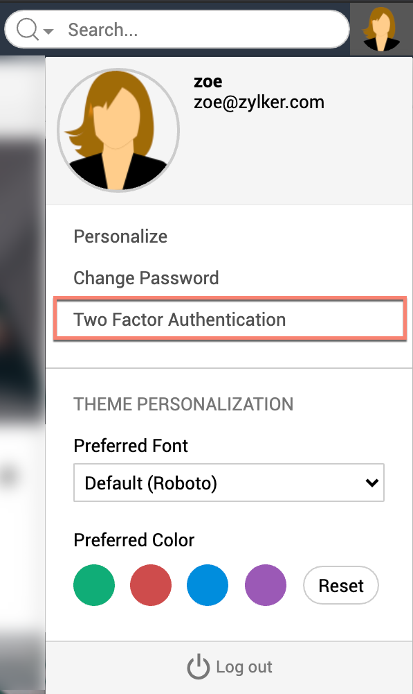 单击右上角的用户图标,然后单击双因素身份验证。