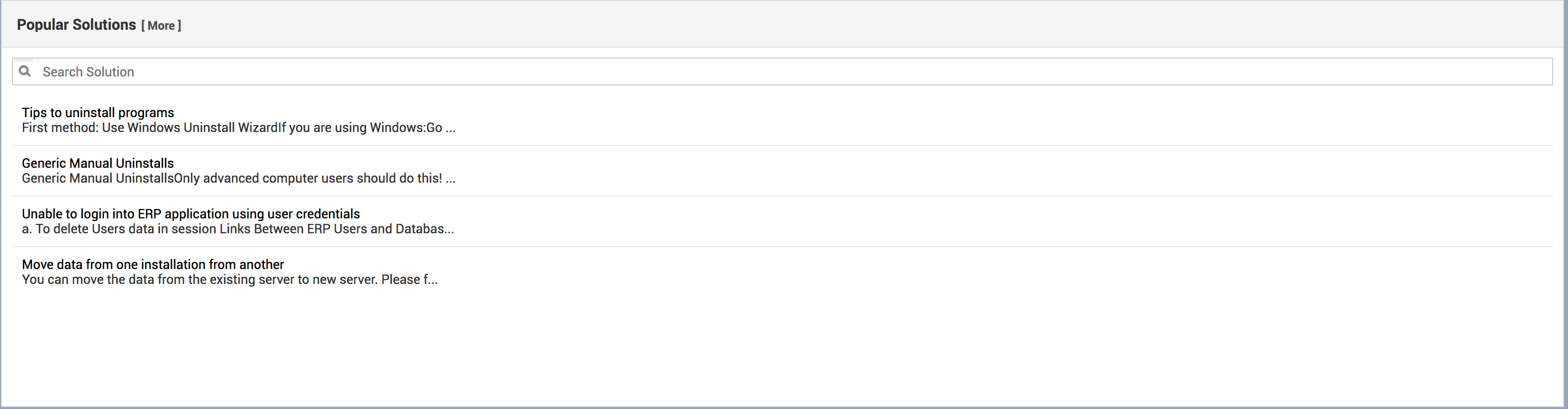 此小部件会显示所有知识库文章。使用频率最高的文章会显示在最上方。搜索框可让你通过关键字在知识库中进行搜索。
