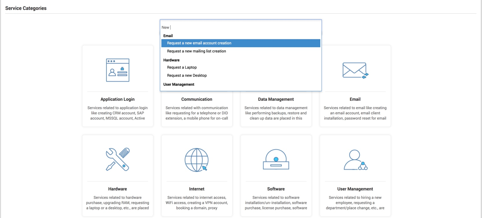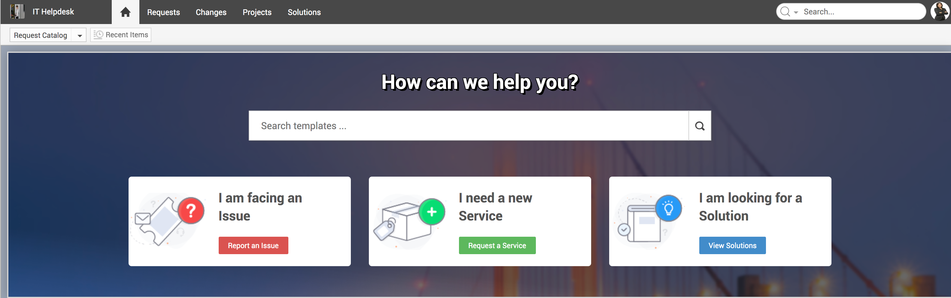 在主页的“我需要一个新服务”磁贴中,单击请求服务。