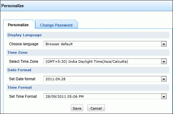 ServiceDesk Plus支持用户依据自己的爱好来选择界面的语言、时区、时间/日期格式等。