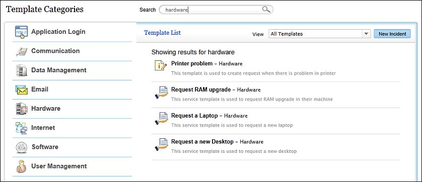 通过提交您的请求的链接,可以报告事故或者提交服务请求。您可以选择事故或服务请求模板然后提交请求。模板将依据模板分类加以显示。