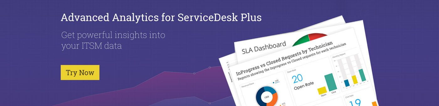 作为 ServiceDesk Plus 用户,您需要智能报表以最低成本提供卓越的客户服务。这需要在尽可能短的时间内生成服务台的详细可视化表示。