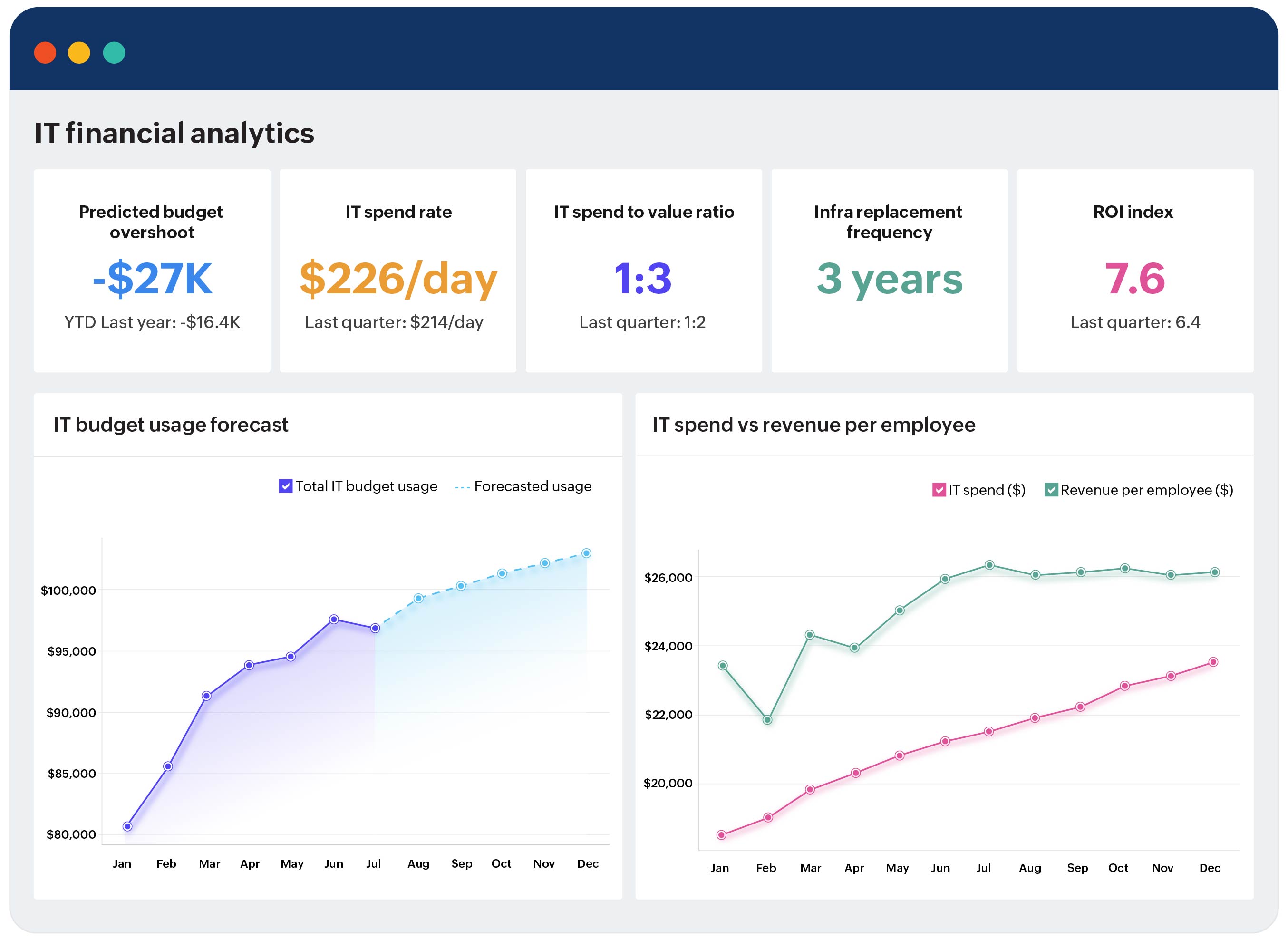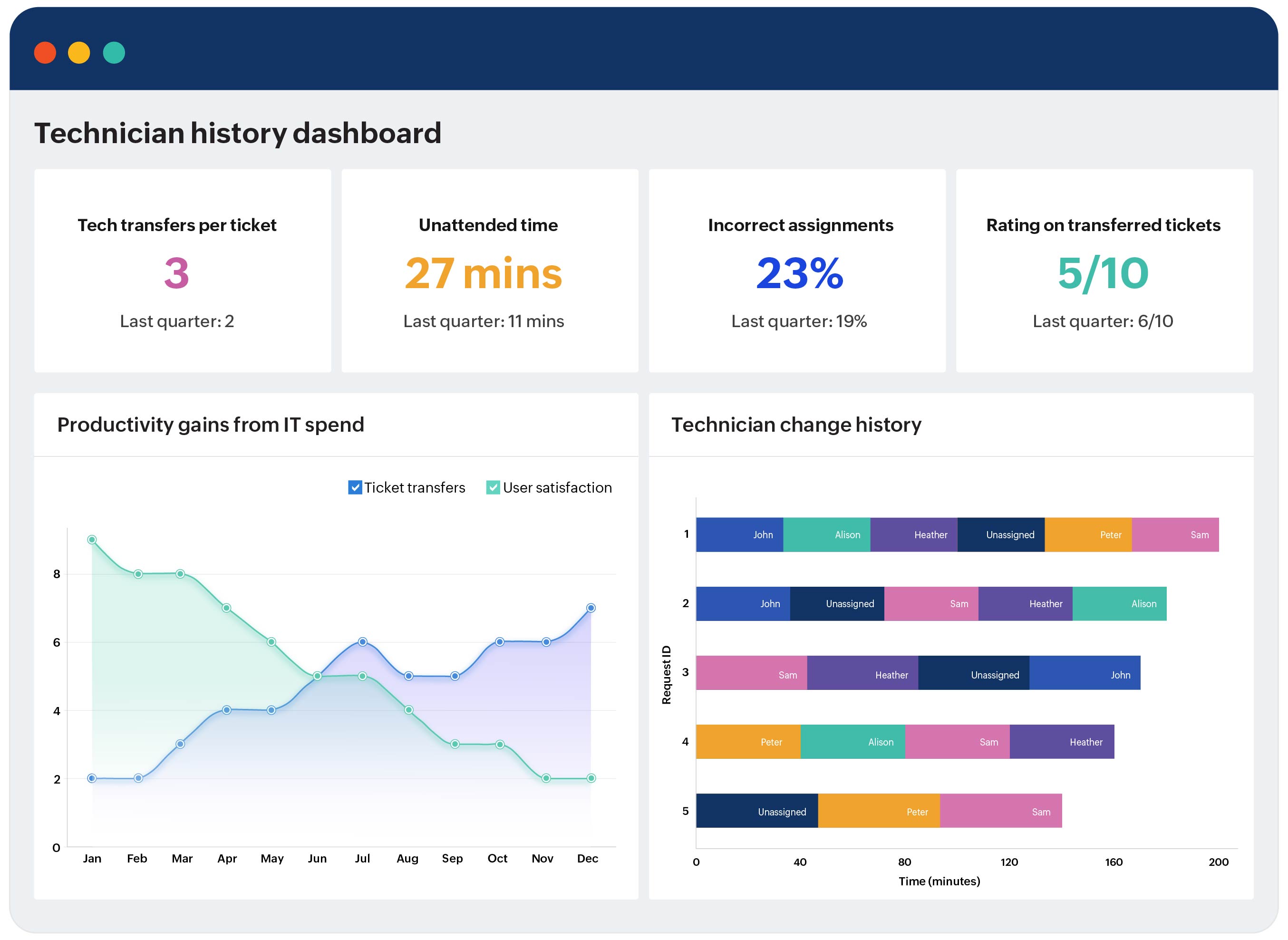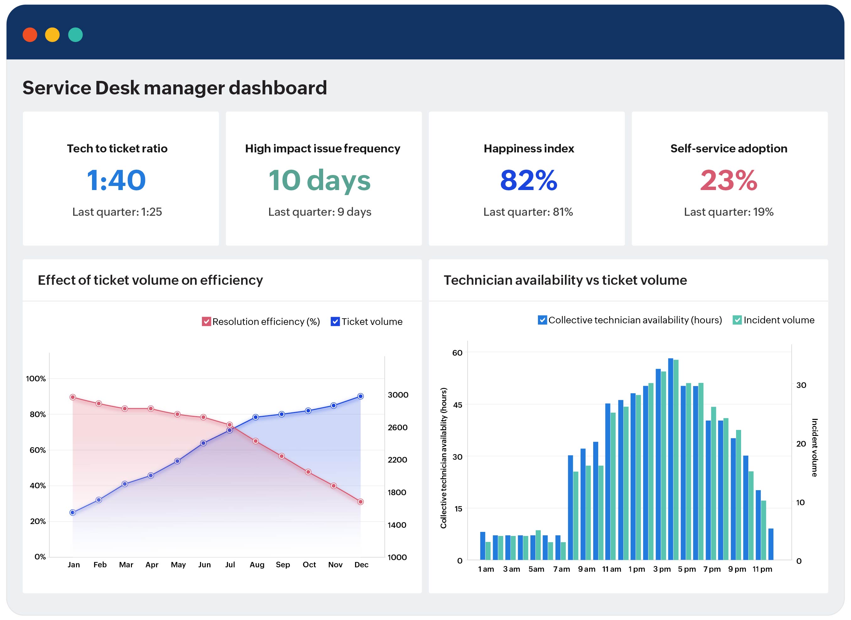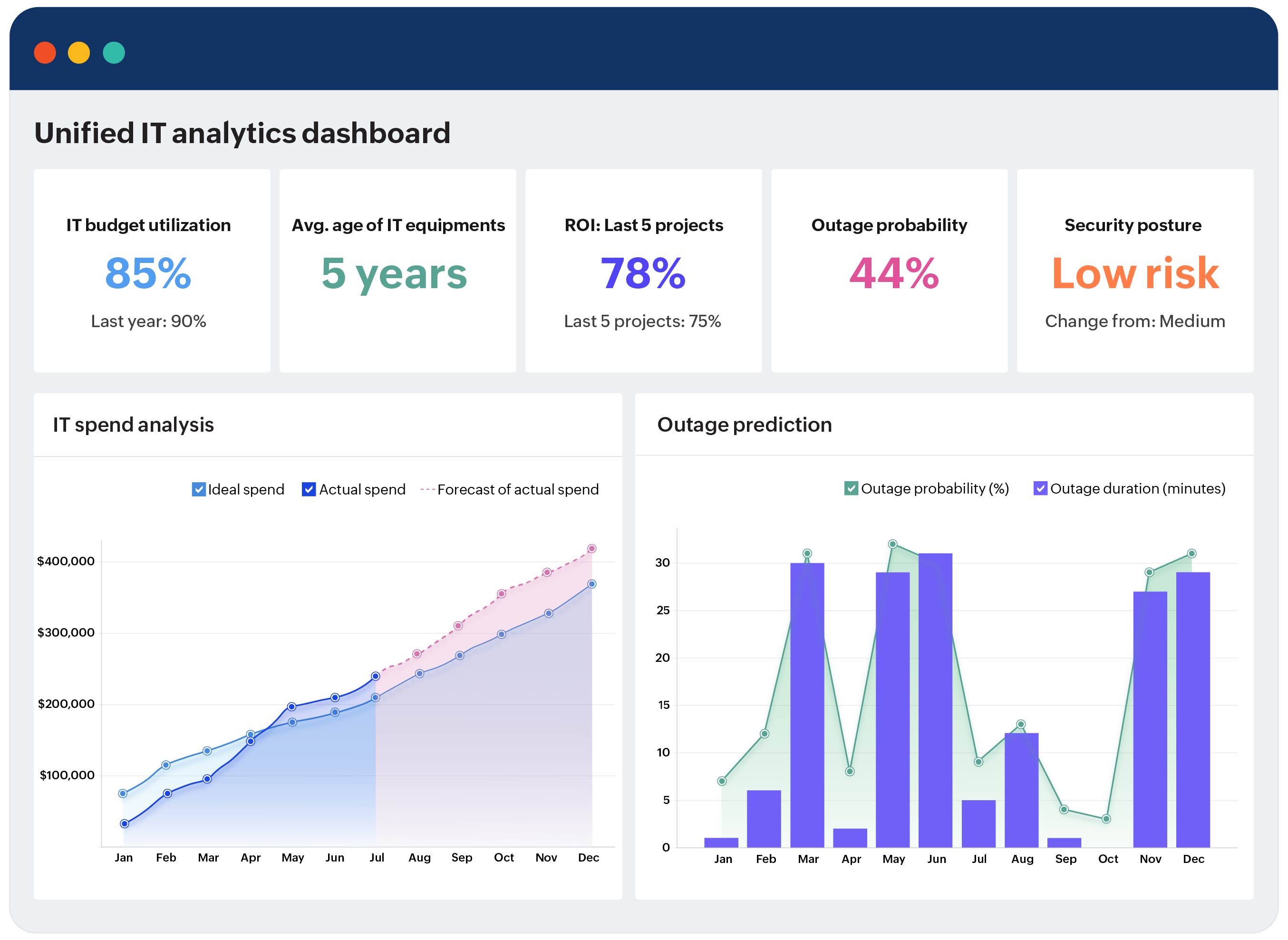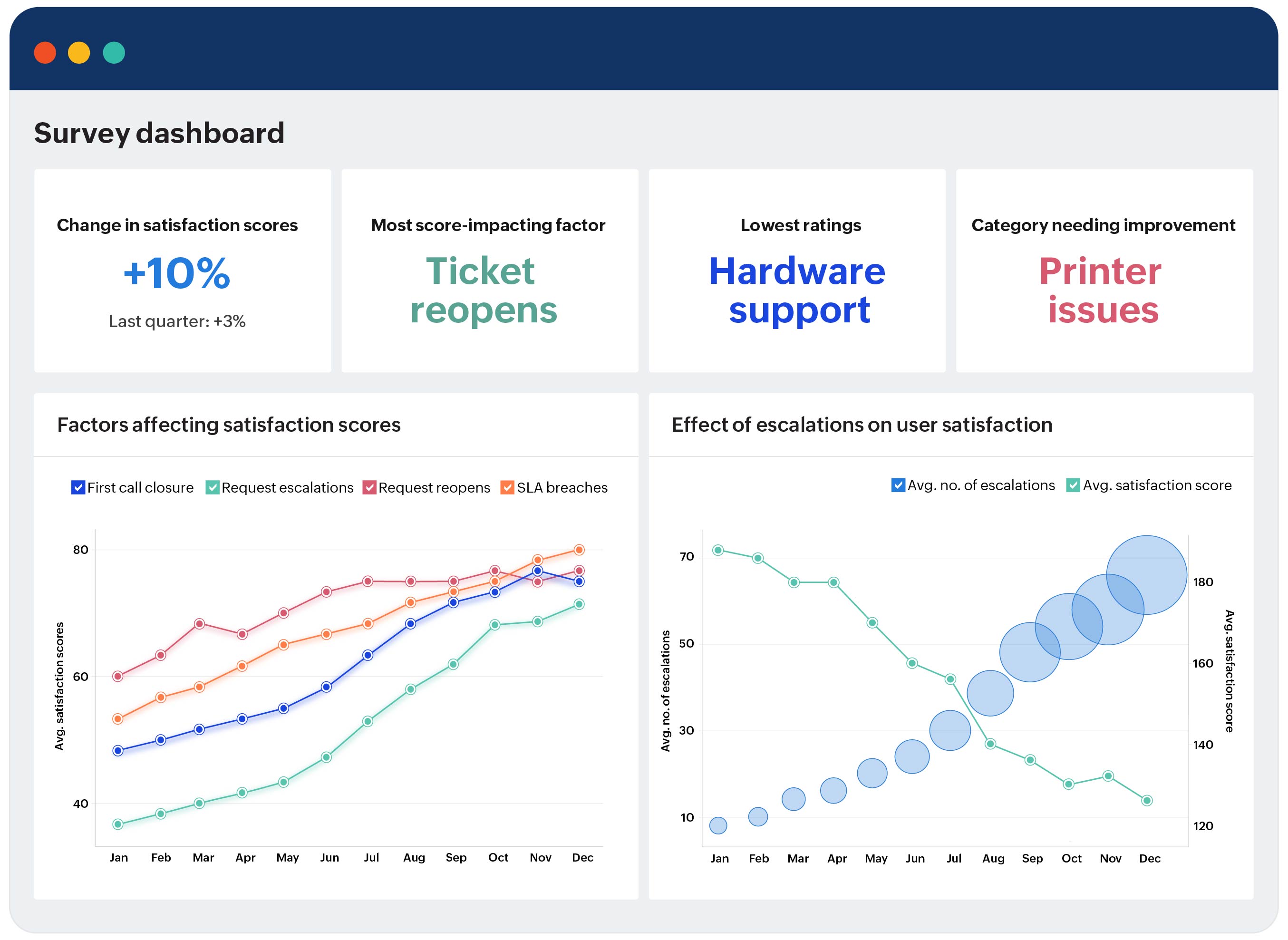 使用 ManageEngine 的高级分析套件获得 ServiceDesk Plus 数据的丰富可视化,我们的分析解决方案与 ServiceDesk Plus 无缝集成,为您提供对帮助台的可行见解,能够深入了解细节,而无需编写冗长的查询。