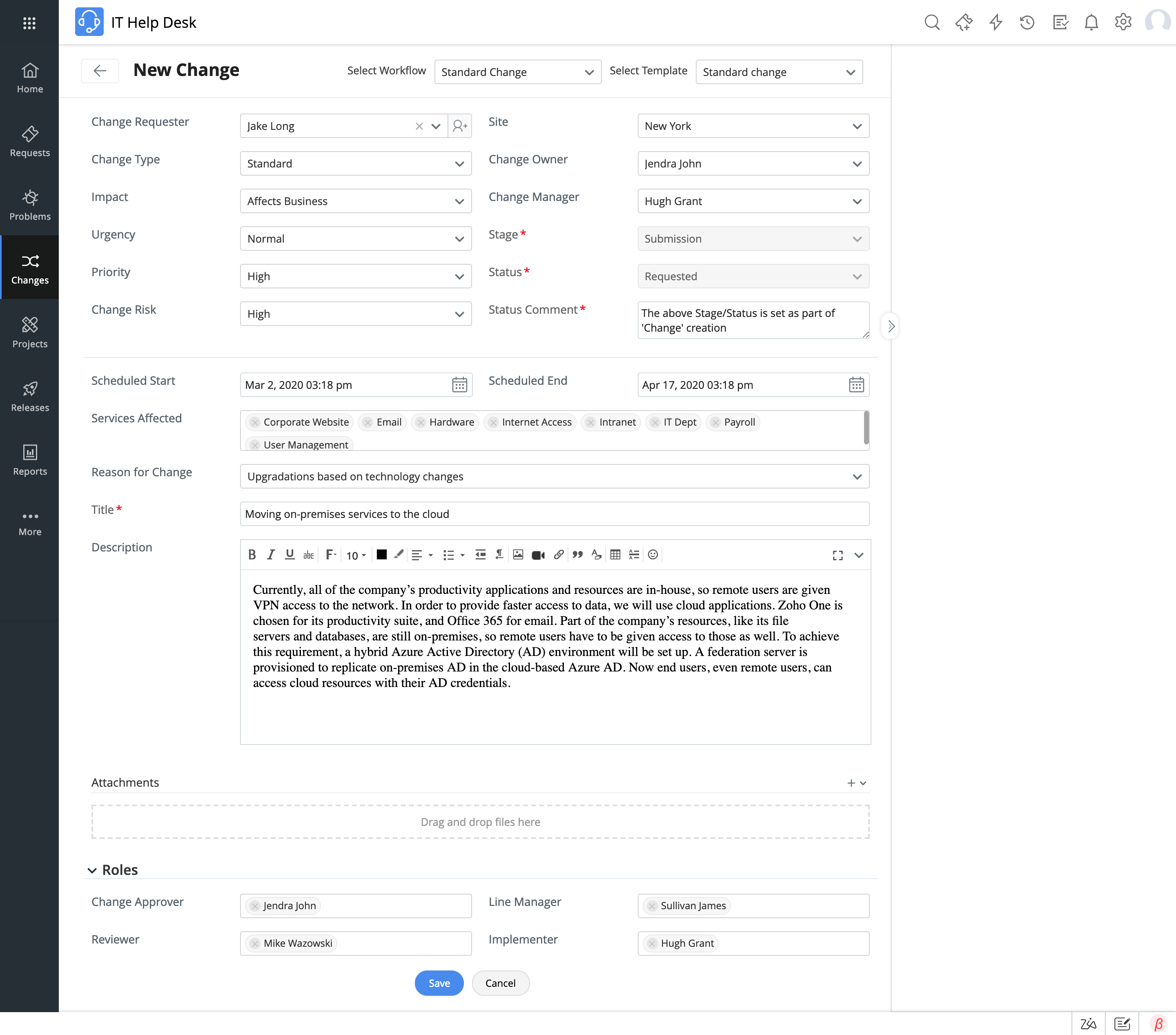 - 让正确的涉众参与进来,比如变更所有者、审批人、直线经理和变更审阅人,使用变更角色。