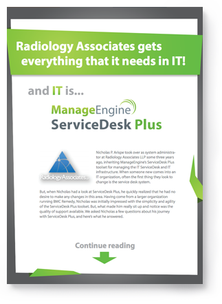 Nicholas P.Arispe是Radiology Associates的系统管理员。我们问了Nicholas一些关于他使用ServiceDesk Plus的问题,下面是他的回答。