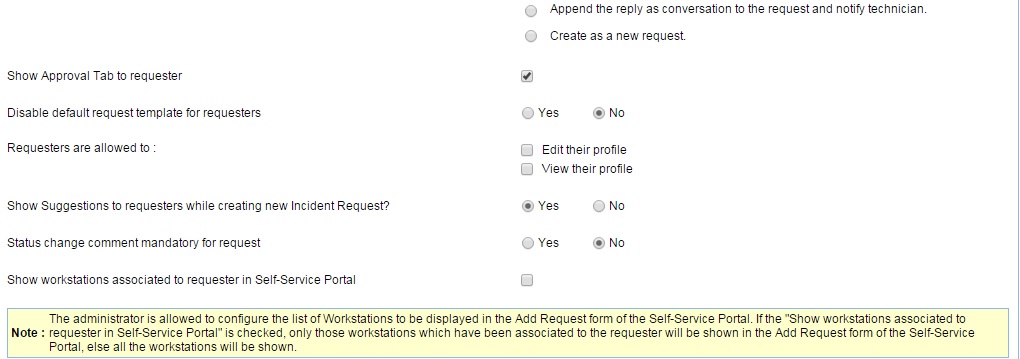 ServiceDesk Plus 9.1 now comes with a feature to mandate the status change comments for Request module. Technician and requester comments on the change of status of a request can be easily captured. By default, status comments are not mandatory but can be disabled/enabled under Admin->Self-service Portal settings.
