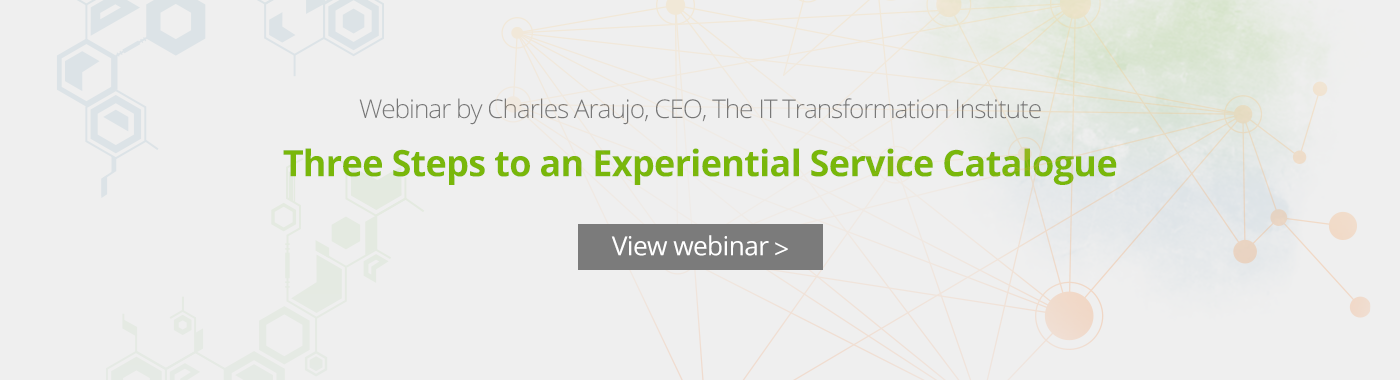 Watch the live recording of the webinar on Three Steps to an Experiential Service Catalogue by Charles Araujo