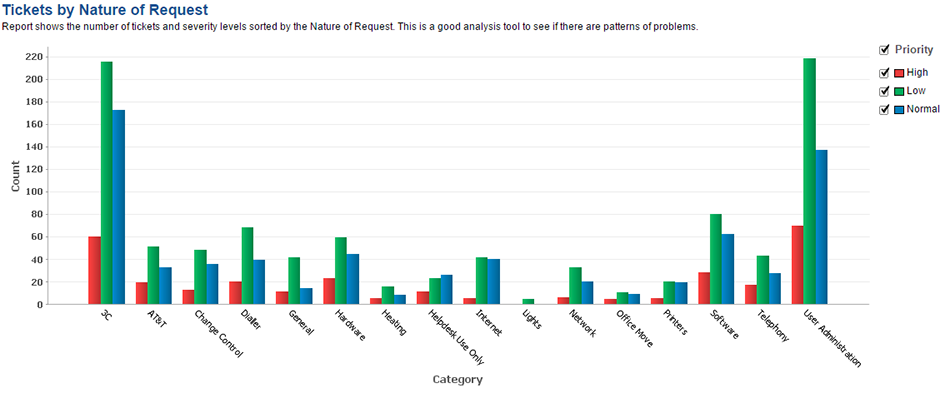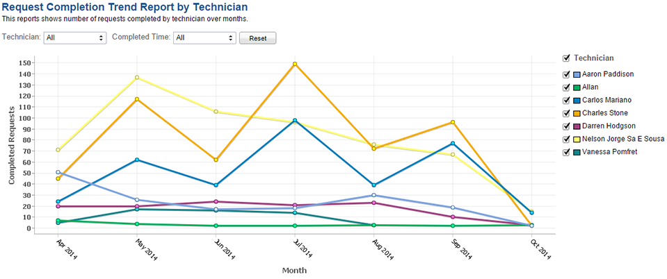IT帮助台持续不断的从他的服务数据中寻找正确的方法引领服务台以正确的方式处理问题。由于服务台团队每天忙于处理问题,报告关键解决指数由于其复杂性变得无法企及。有效的KPI报告可以通过查询报表实现, 但不是所有的机构都有能力写复杂的数据库查询语句。因此,关键分析和洞察力无法帮助IT经理做出有效决定。
