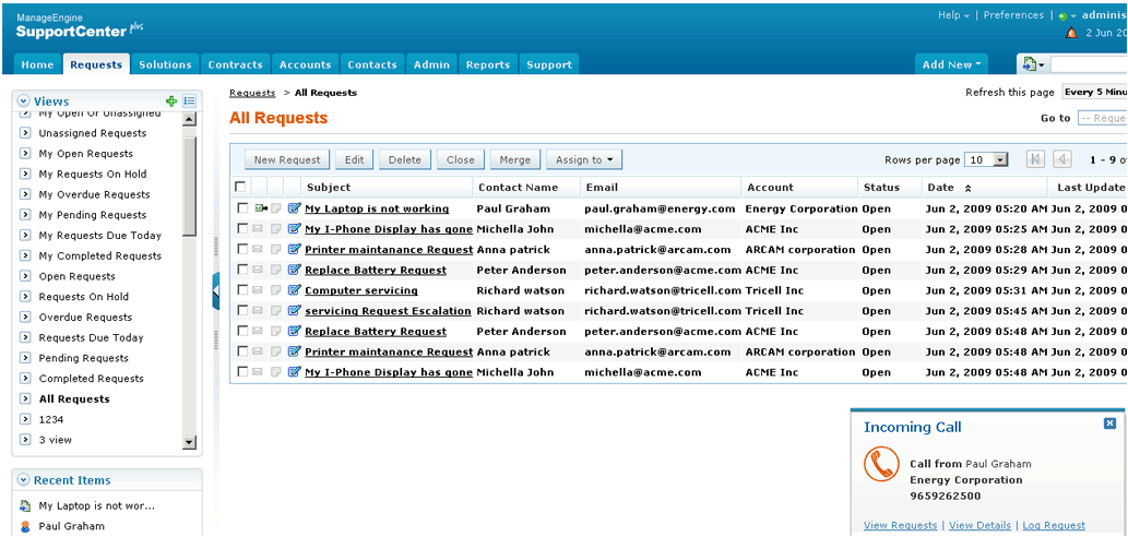 Note: Please note that a separate license should be purchased to enable CTI in SupportCenter Plus.