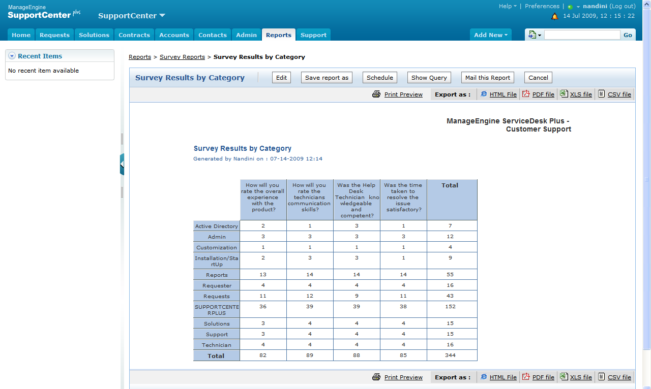 - SupportCenter Plus provides you with 50 inbuilt reports which gives you immediate access to different reports based on Requests, Priority, Catogories, SLAs etc.