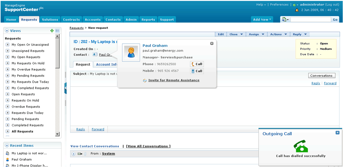 When a request is raised via phone call, it would be great if the technician can access the requesters machine from his desk to resolve the issue instantly.
