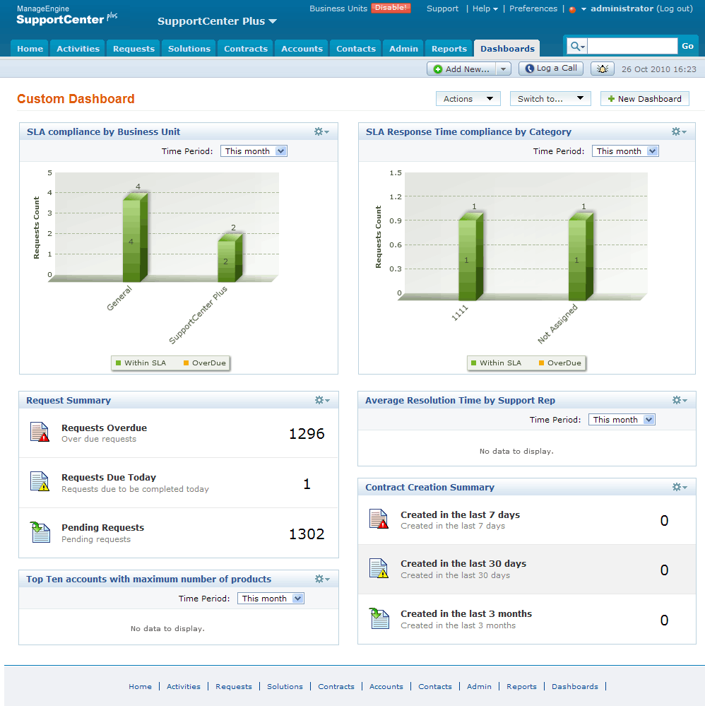 SupportCenter Plus默认提供了50余种基于请求、优先级、种类、服务级别的报表以方便用户查看。