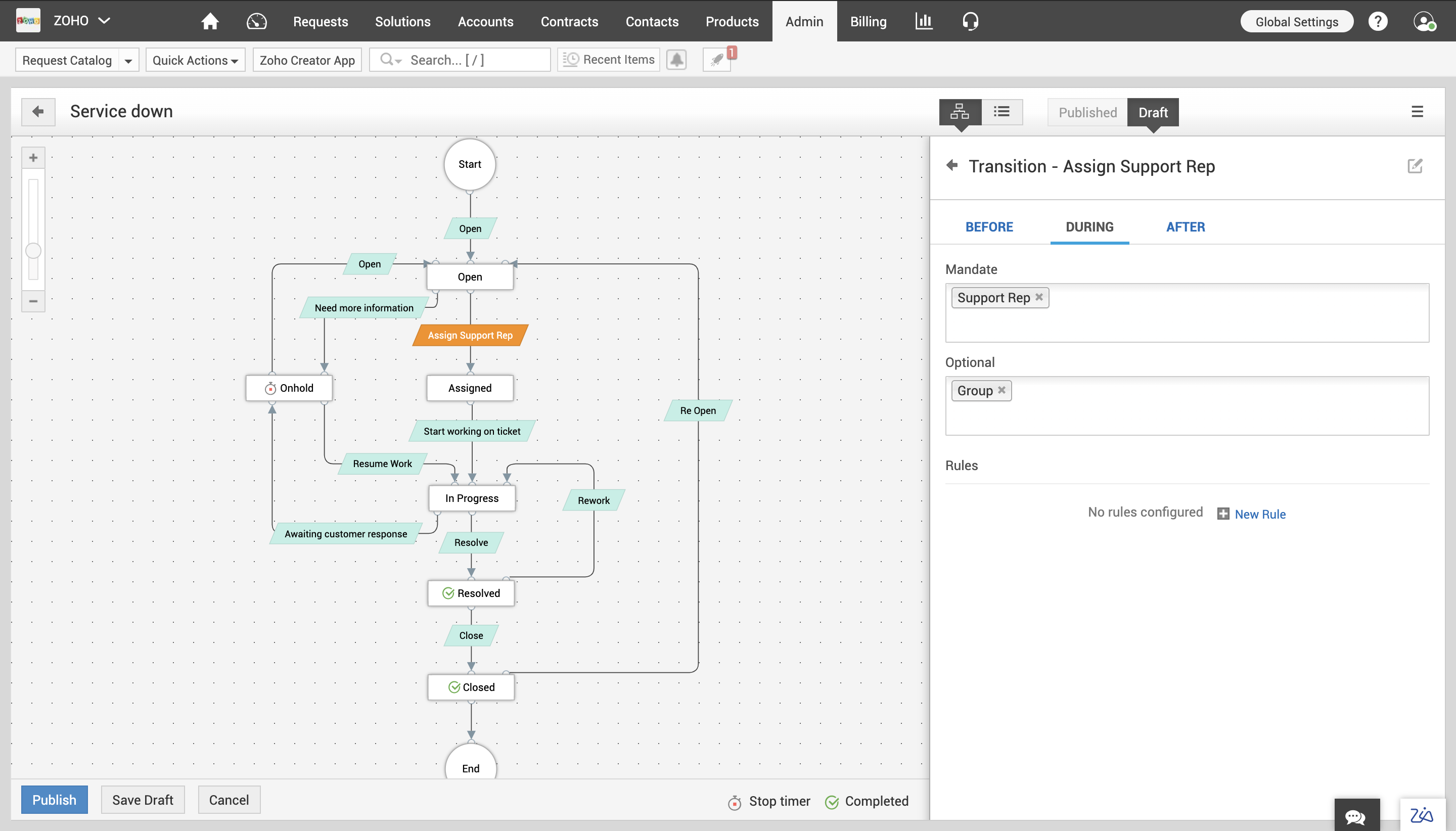 - 定义条件规则,以限制支持代表在状态之间手动移动工单,并最大限度地减少人为错误。