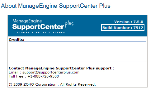 - In the SupportCenter Plus web client, click the "Help >> About Product" link on top right of the page.
