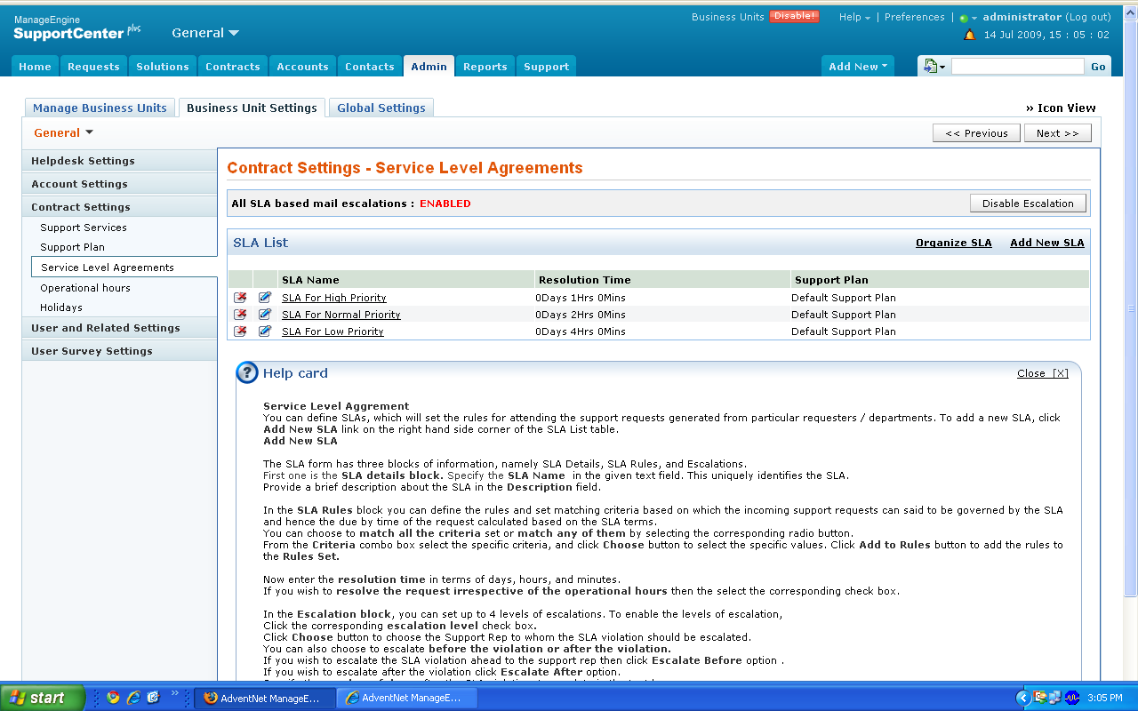Business today relies heavily on the quality of IT services. Degradations in IT Service delivery can be costly and damaging to business. More and more organizations are implementing strict Service Level Agreements to ensure high standards of IT service. Defining Service Level Agreements is even more critical in the case of outsourcing IT. This place tremendous pressure on your SupportCenter Support Reps to ensure that the required IT service levels are being met.
