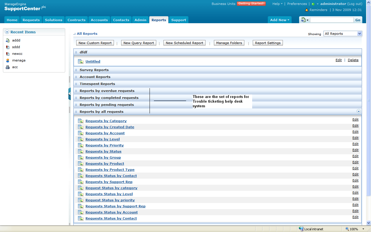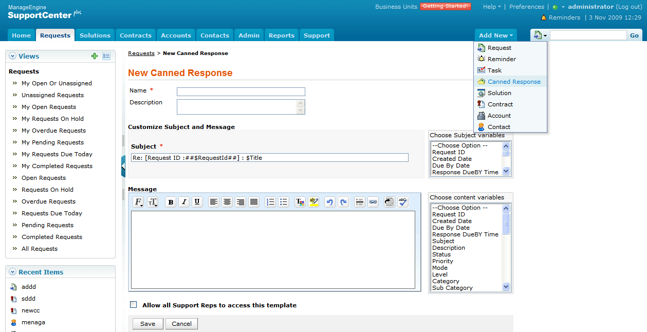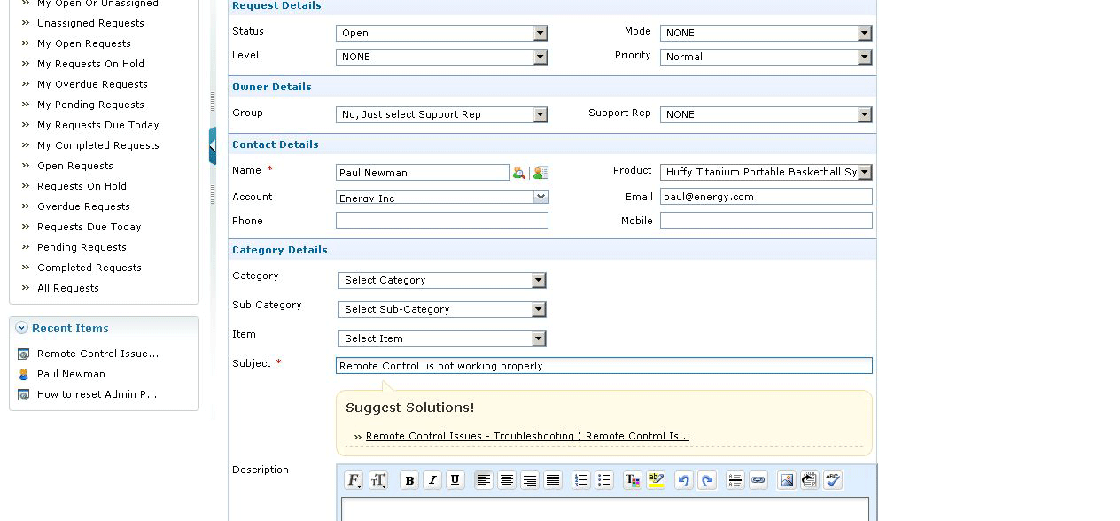 SupportCenter Plus has an inbuilt trouble ticketing / helpdesk module that helps you track customer requests. It helps you respond to customer requests right from the helpdesk interface without having to rely on your email client.
