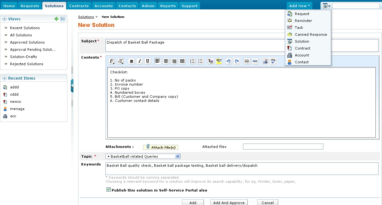 • Every resolution sent through the Support helpdesk can be moved to knowledge base for future reference