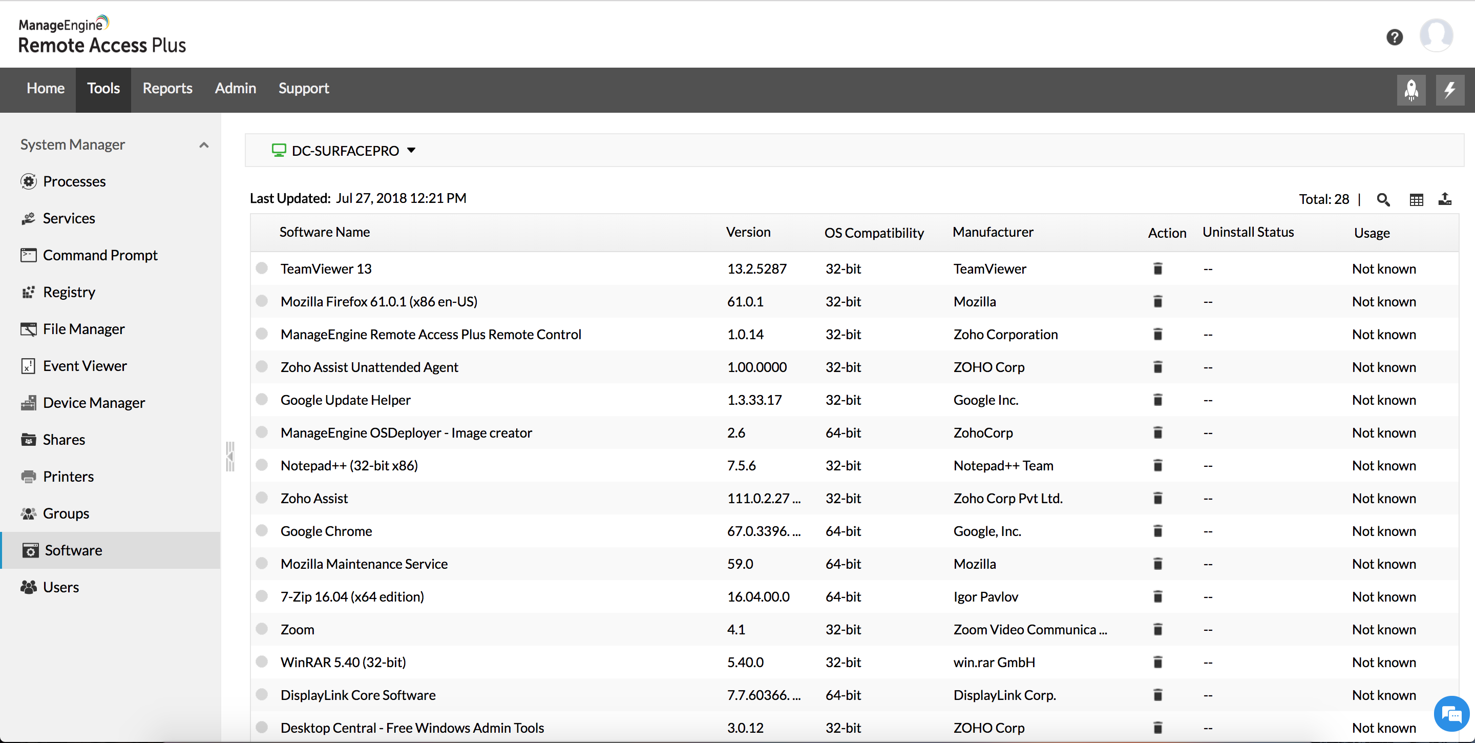 浏览任何网络计算机中安装的所有软件的列表,只需单击即可从计算机远程卸载软件。