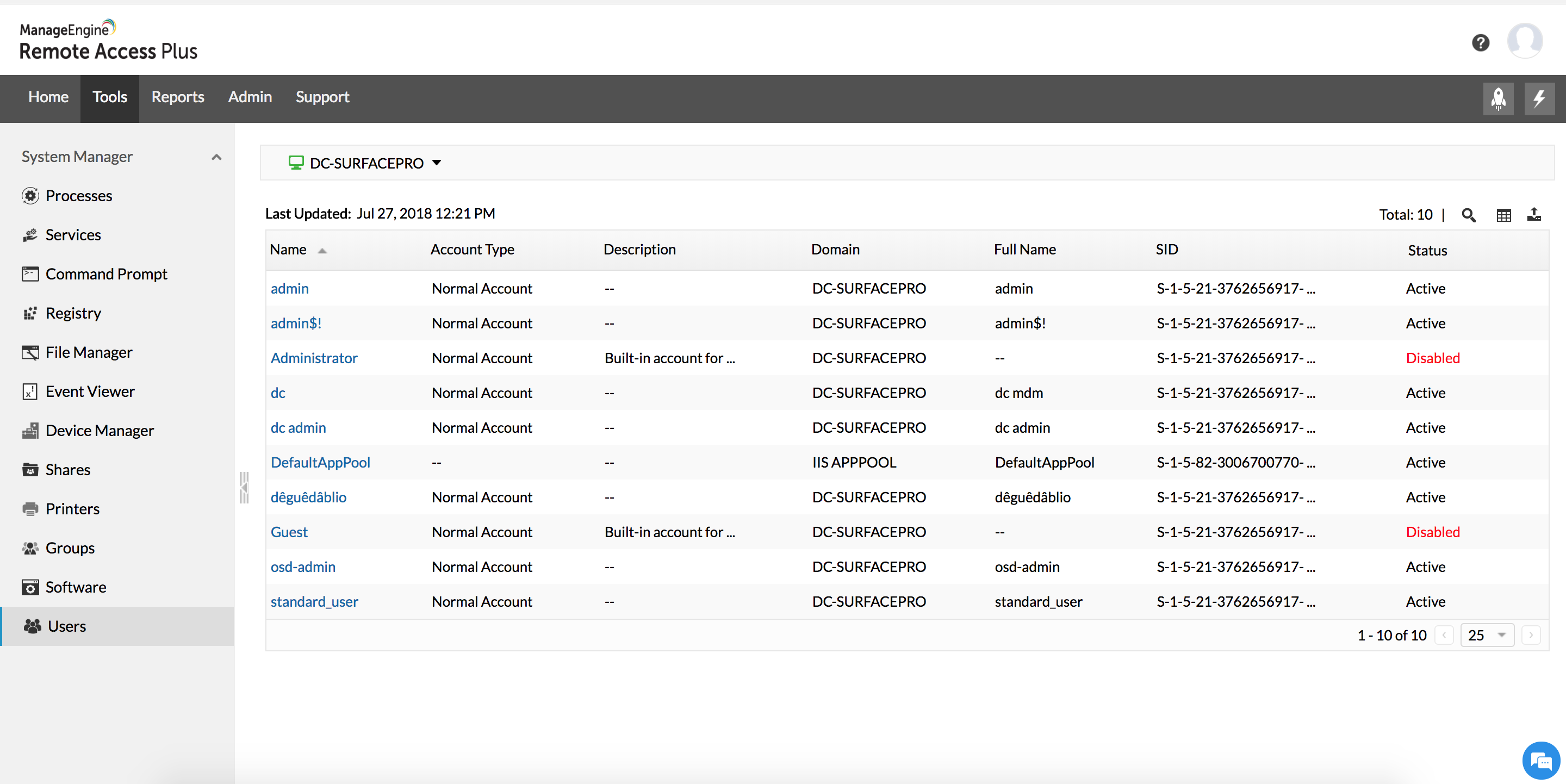 - 捕获与网络中任何计算机关联的所有用户的列表,包括有关用户名,帐户类型,域信息等的信息。