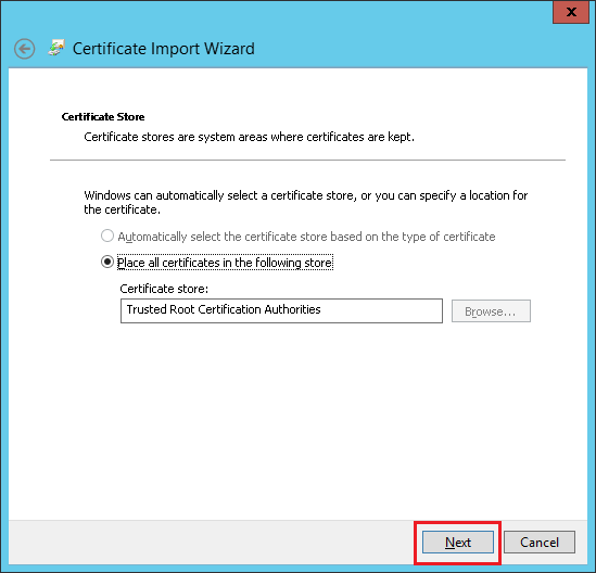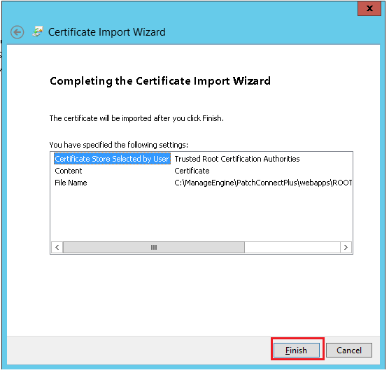 注意: 同样,请确保按照上面给出的步骤将签名证书导入Trusted Publishers证书存储区。