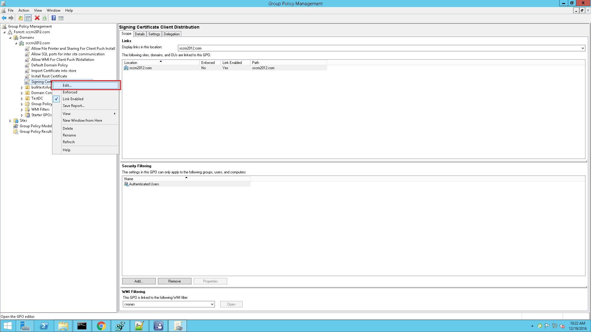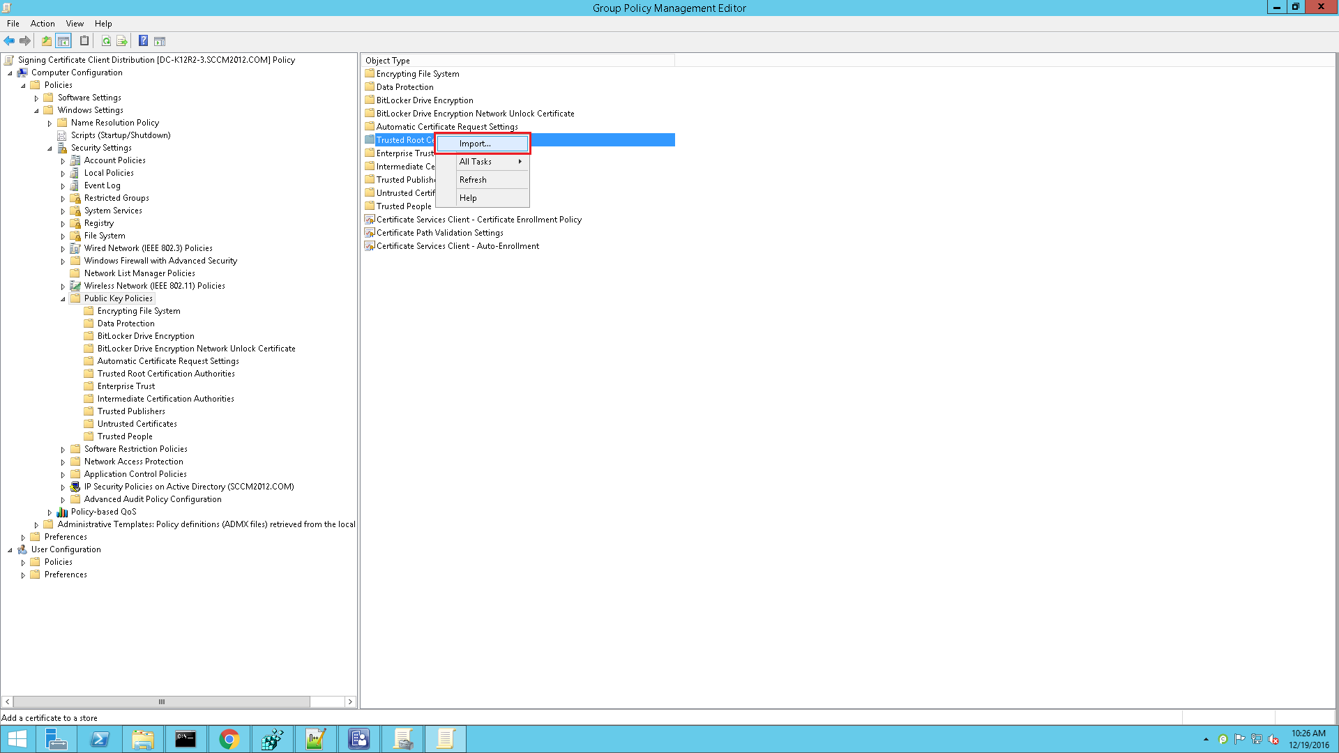 要使用GPO方法将签名证书部署到所有客户端计算机,请按照以下在域控制器系统上给出的步骤进行操作,