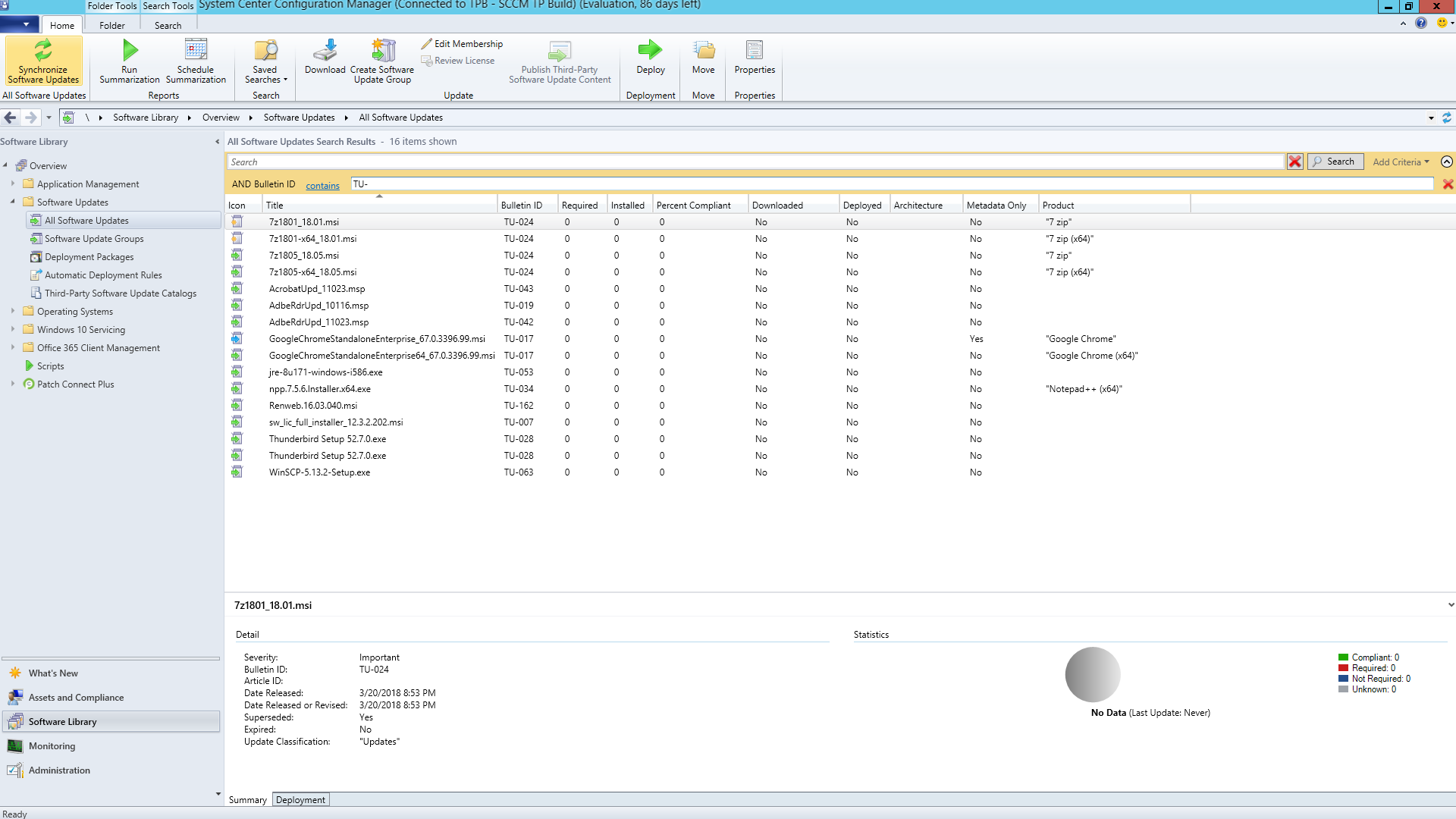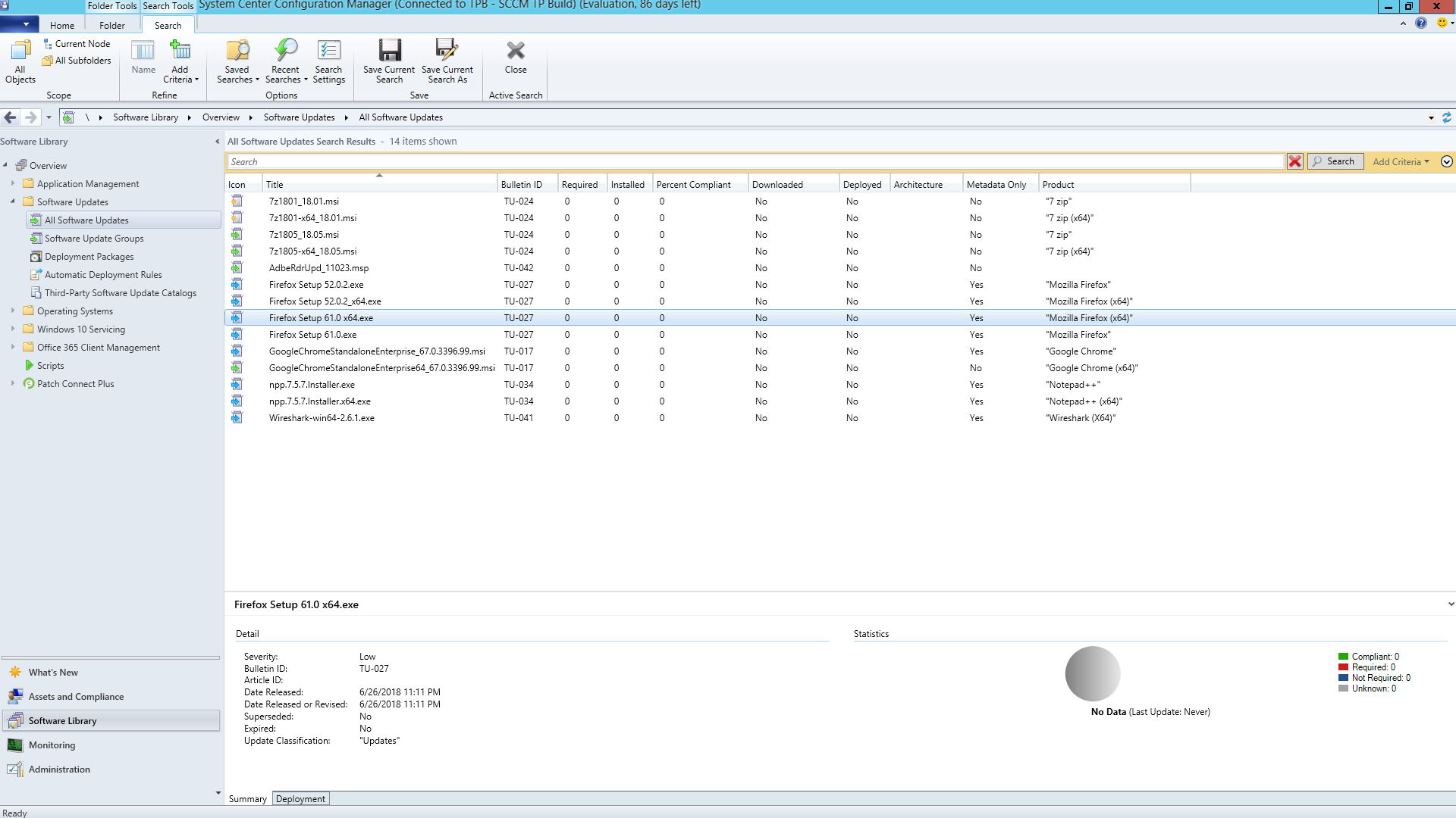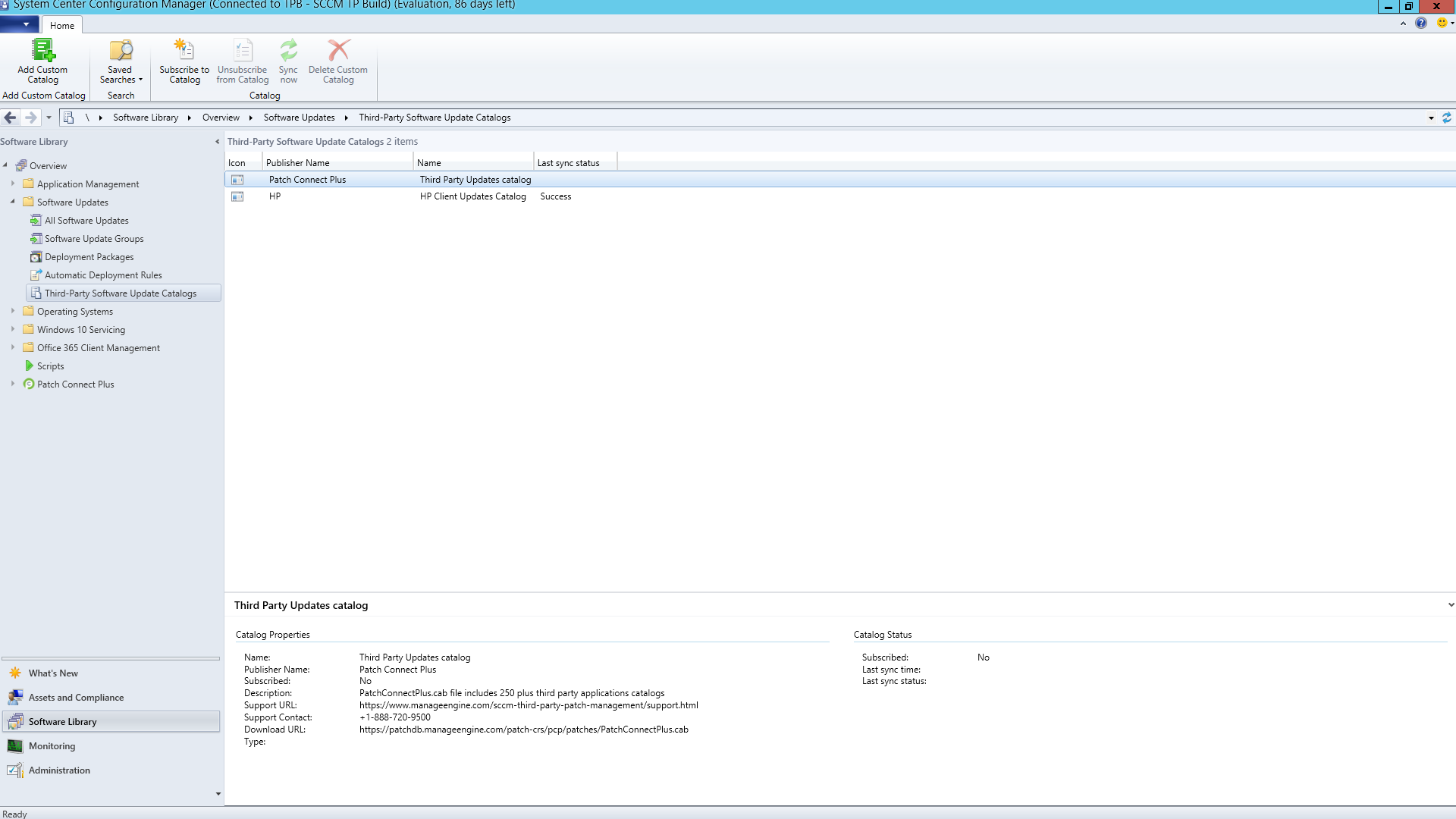 打开SCCM控制台并导航到\ Software Library \ Overview \ Software Updates \ All Software Updates并选择“Third-Party Software Update Catalogs”。此处列出了第三方应用程序目录。
