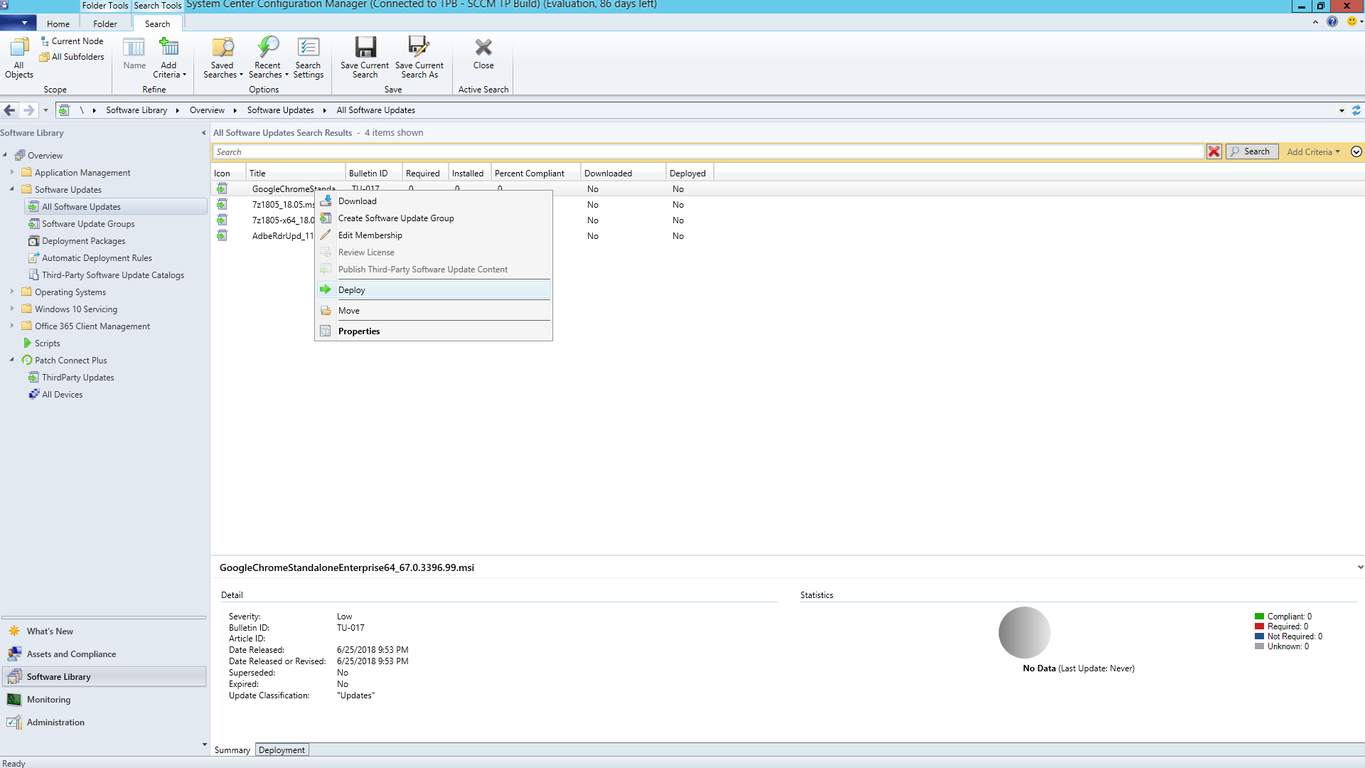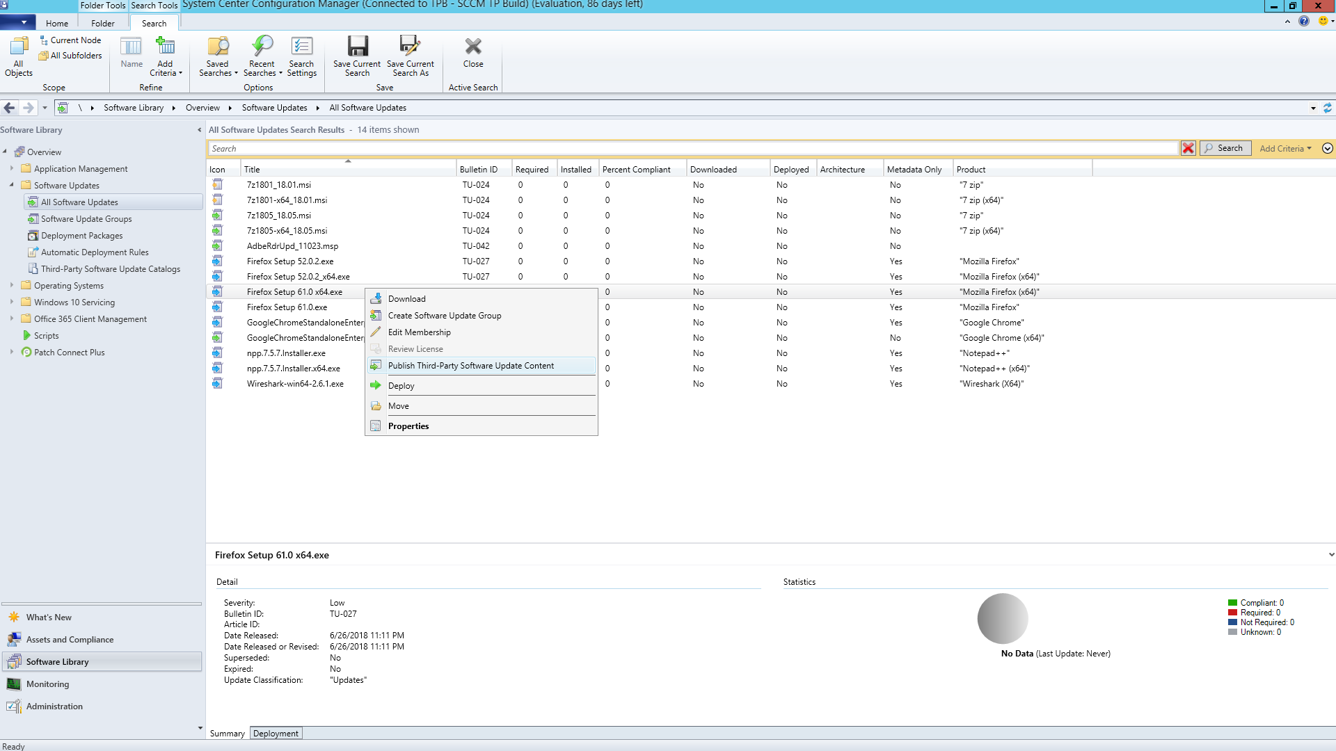 选择所需的应用程序,然后右键单击以选择“发布第三方软件更新内容”。这将下载并发布更新到SCCM的全部内容。您可以在