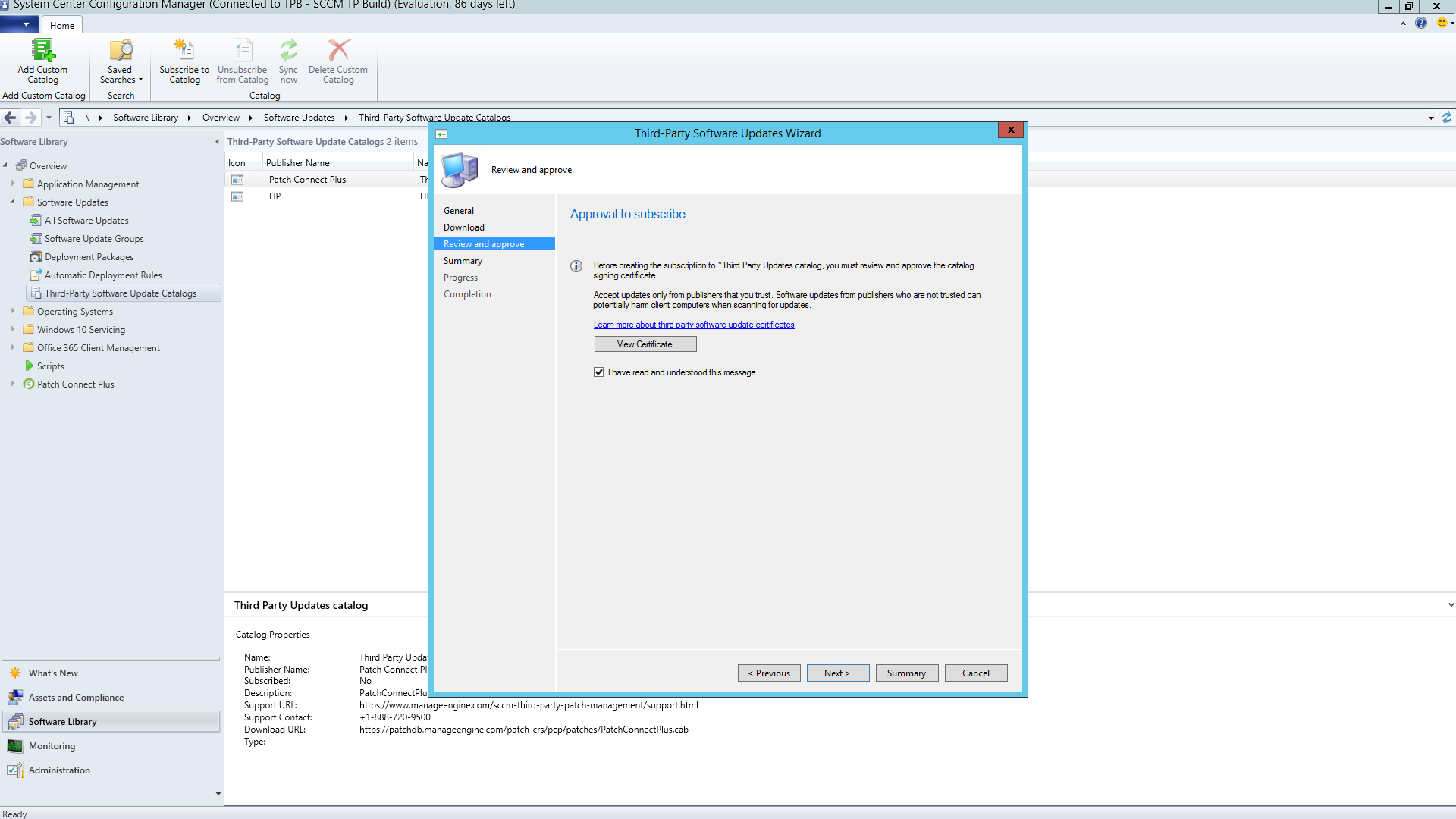目录已成功下载并订阅了SCCM。现在,更新发布过程将自动启动。