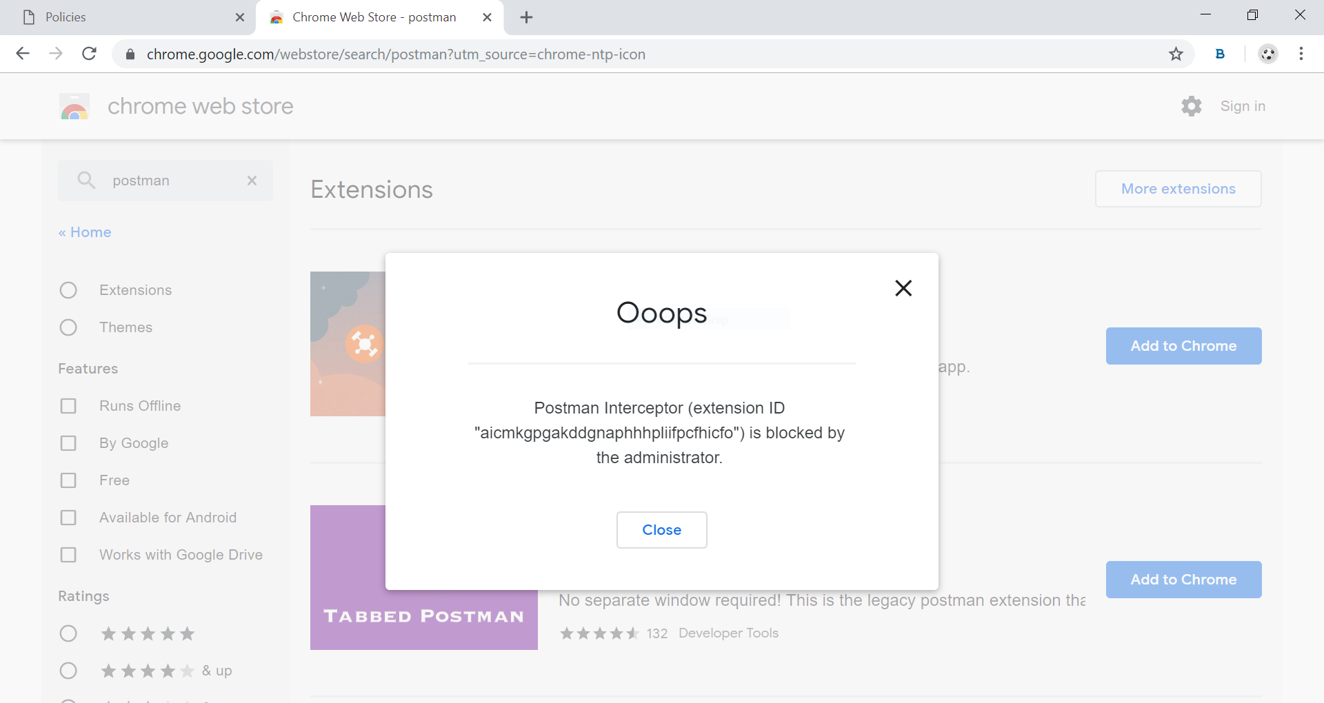 当用户尝试下载列入黑名单的分机时,会显示一个弹出窗口,表示该分机已被管理员阻止。