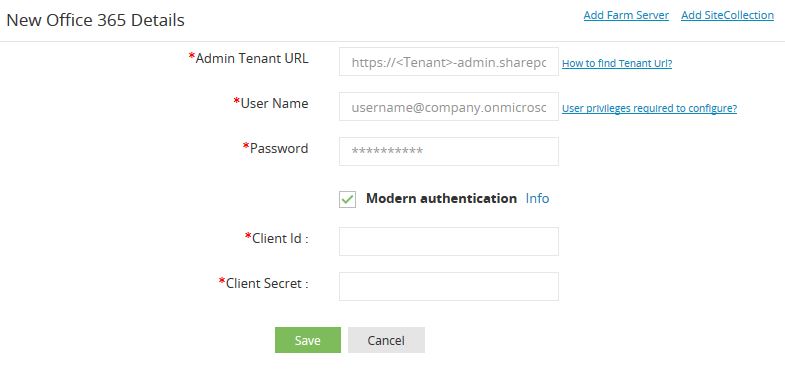 要将Microsoft 365服务器添加到SharePoint Manager Plus,用户必须具备以下条件: