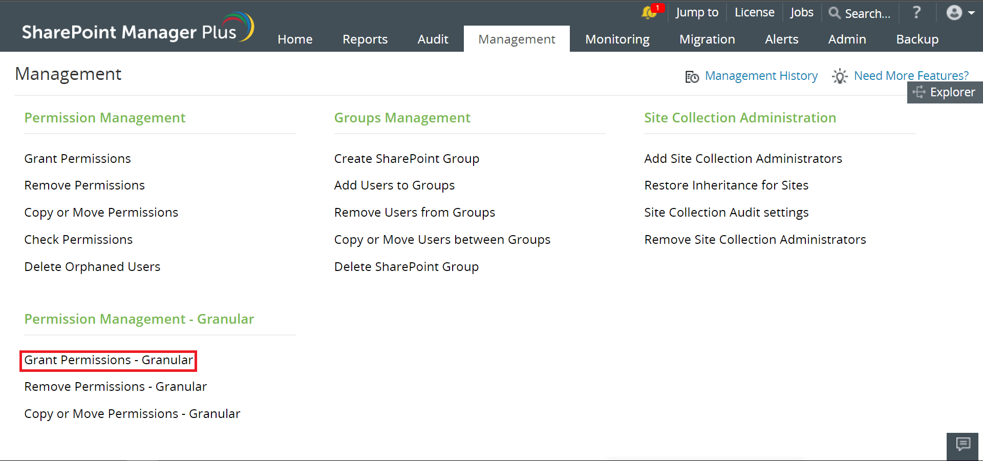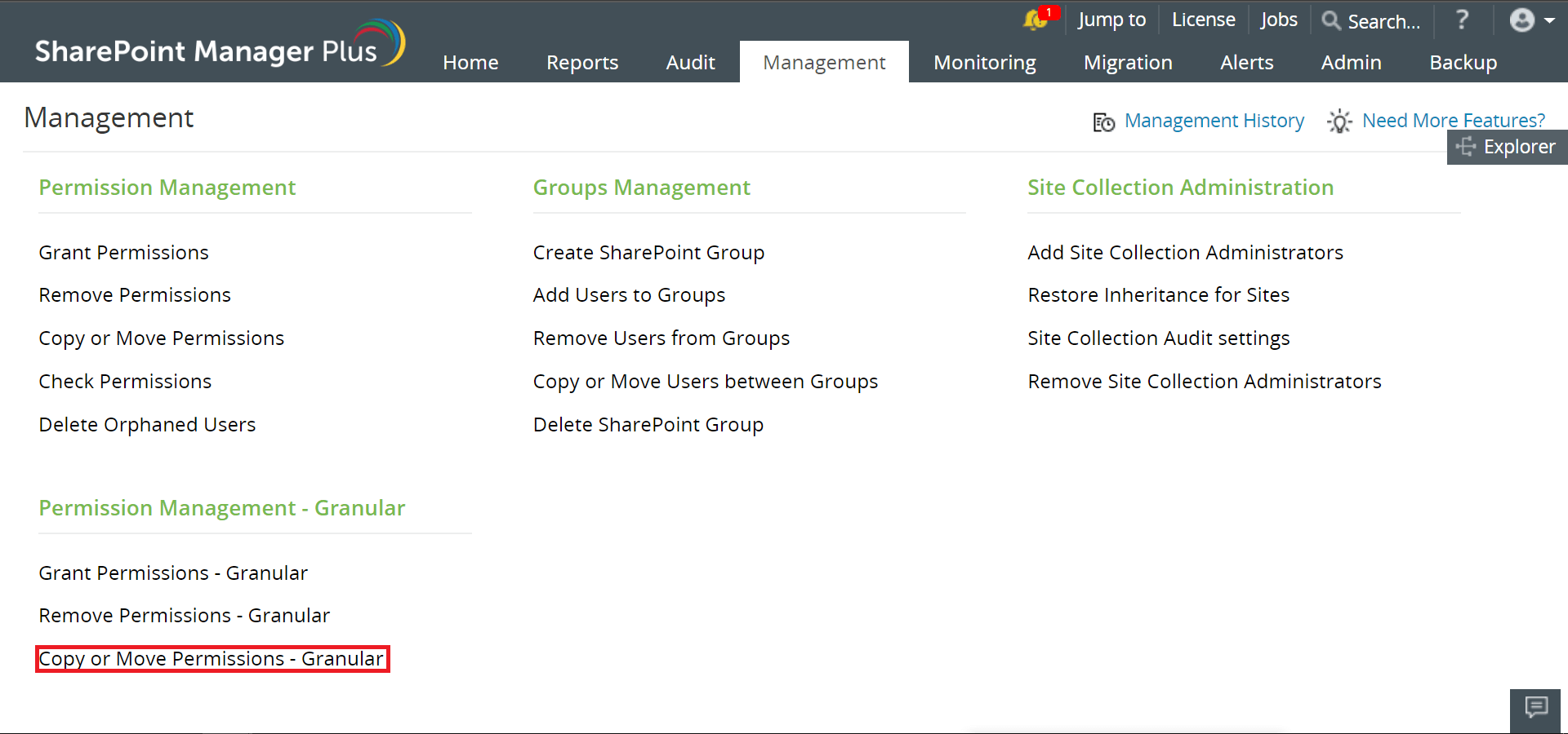- 点击管理标签,然后点击权限管理 - 粒度下的复制或移动权限。