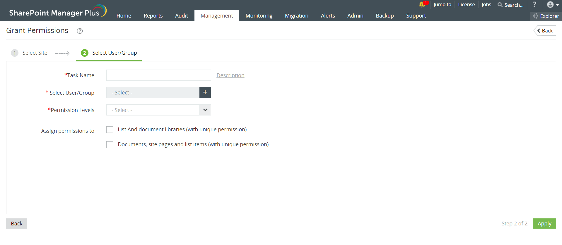 - 点击应用以启动管理任务。