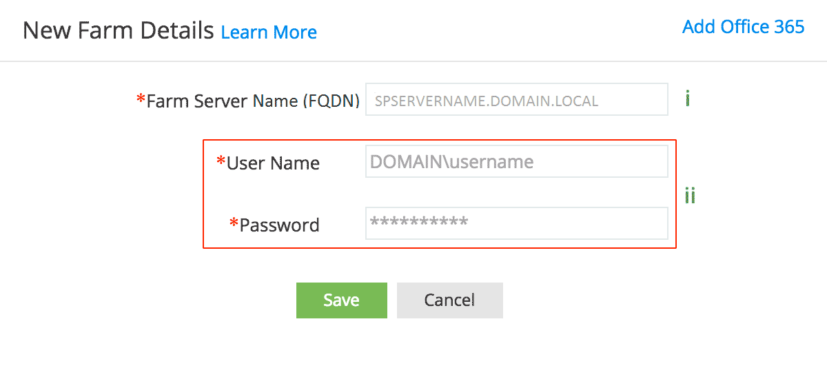用于配置本地Farm服务器的用户帐户必须具有以下提到的权限