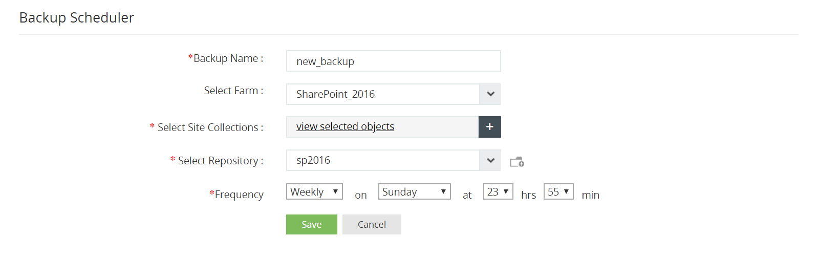 SharePoint Manager Plus允许管理员创建和管理备份计划。要添加、编辑或删除计划,请移至备份标签并从左侧面板中选择备份计划。已添加的计划列表(如果有)将出现在屏幕上。