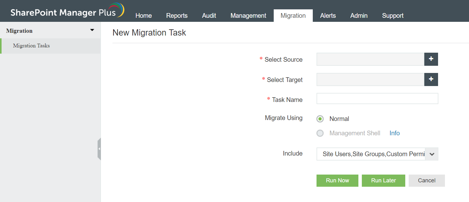 默认: 这是默认的SharePoint Manager Plus方法,可用于任何迁移任务。